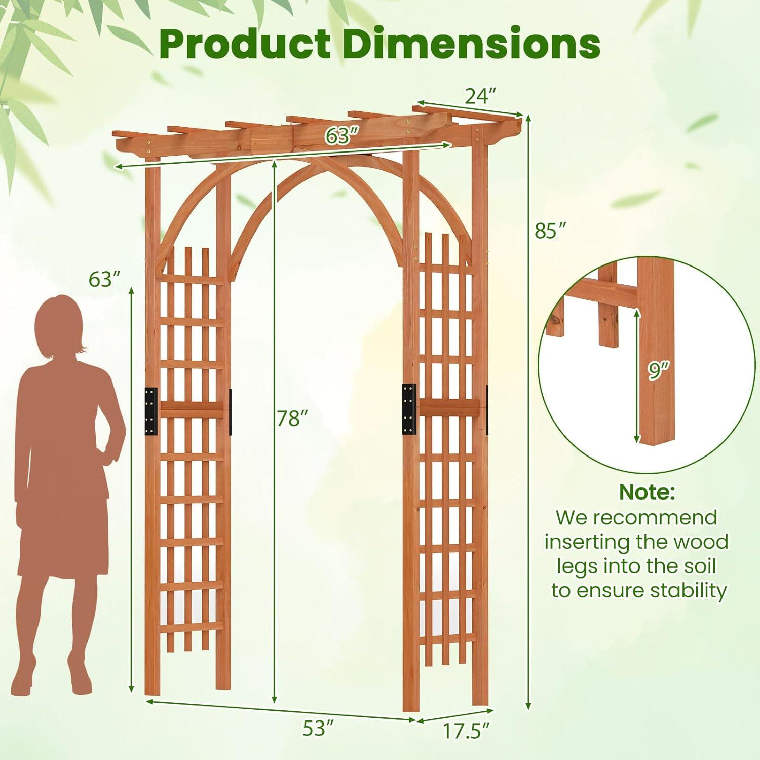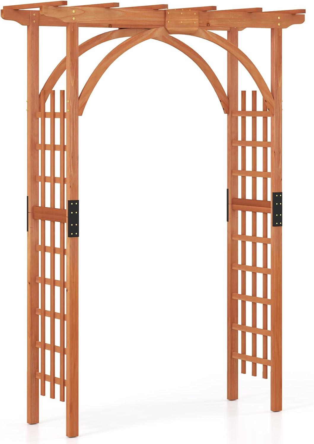 [Fir Wood Construction]: Crafted from 100% natural fir wood, this garden arbor trellis offers exceptional strength and long-lasting durability. A protective, water-based coating enhances its resistance to outdoor elements, ensuring years of reliable use in your garden or yard.