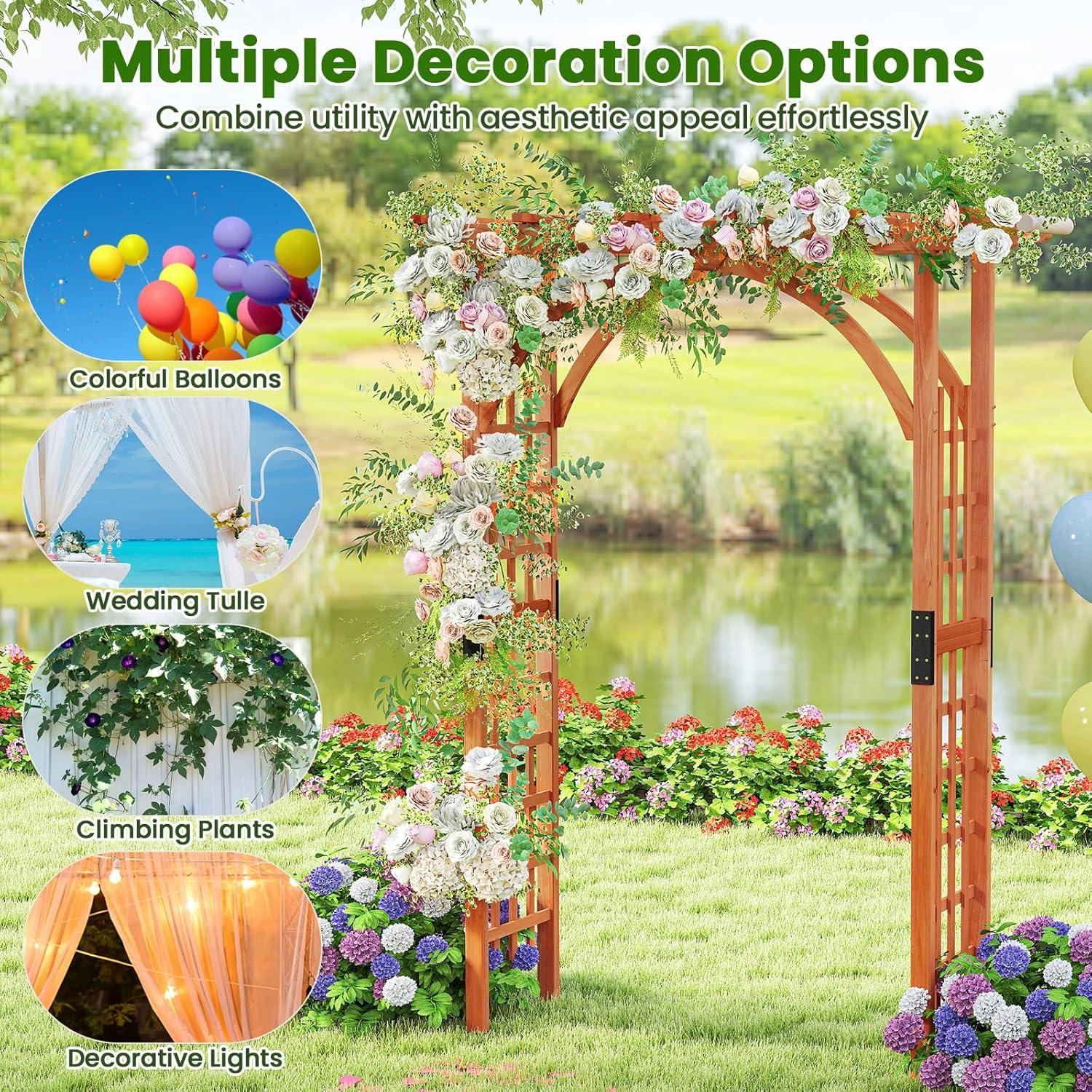 [Decorate for Any Occasion]: Standing an impressive 7.7 feet tall, this pergola-style arch creates a striking focal point for weddings, garden paths, backyard entrances, or special events. Easily customize it with flowers, string lights, tulle, or balloons to suit any celebration or season.
