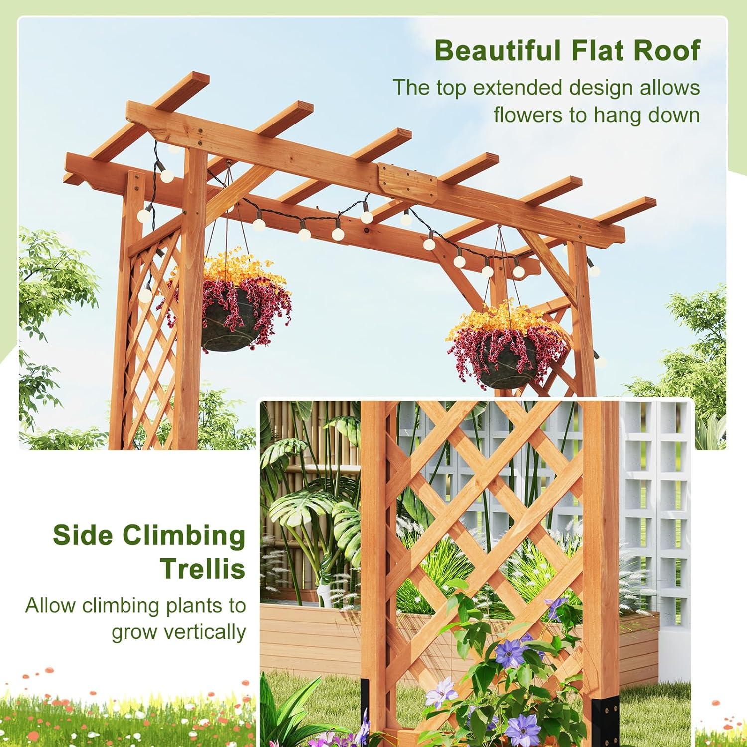 [Spacious Climbing Area]: Designed with lattice side panels, this wooden arbor provides sturdy support for a variety of climbing plants, such as roses, vines, morning glories, and clematis. The arched top features an extended design, allowing plants to grow and cascade beautifully, adding elegance and charm to your outdoor space.