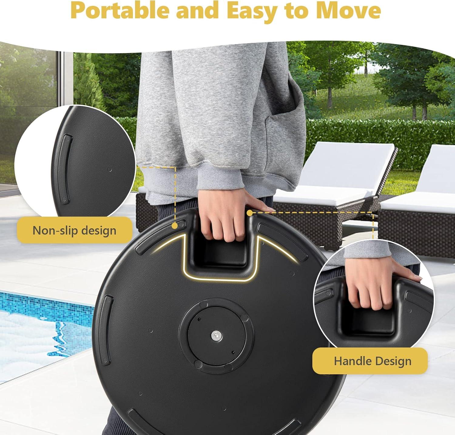 【Easy Carrying & Wide Application】: The market umbrella holder is equipped with a built-in handle on the bottom, therefore it is easy to carry anywhere you want, such as patio, poolside, beach, terrace, deck, lawn, garden, and other scenarios as well as a variety of commercial uses.