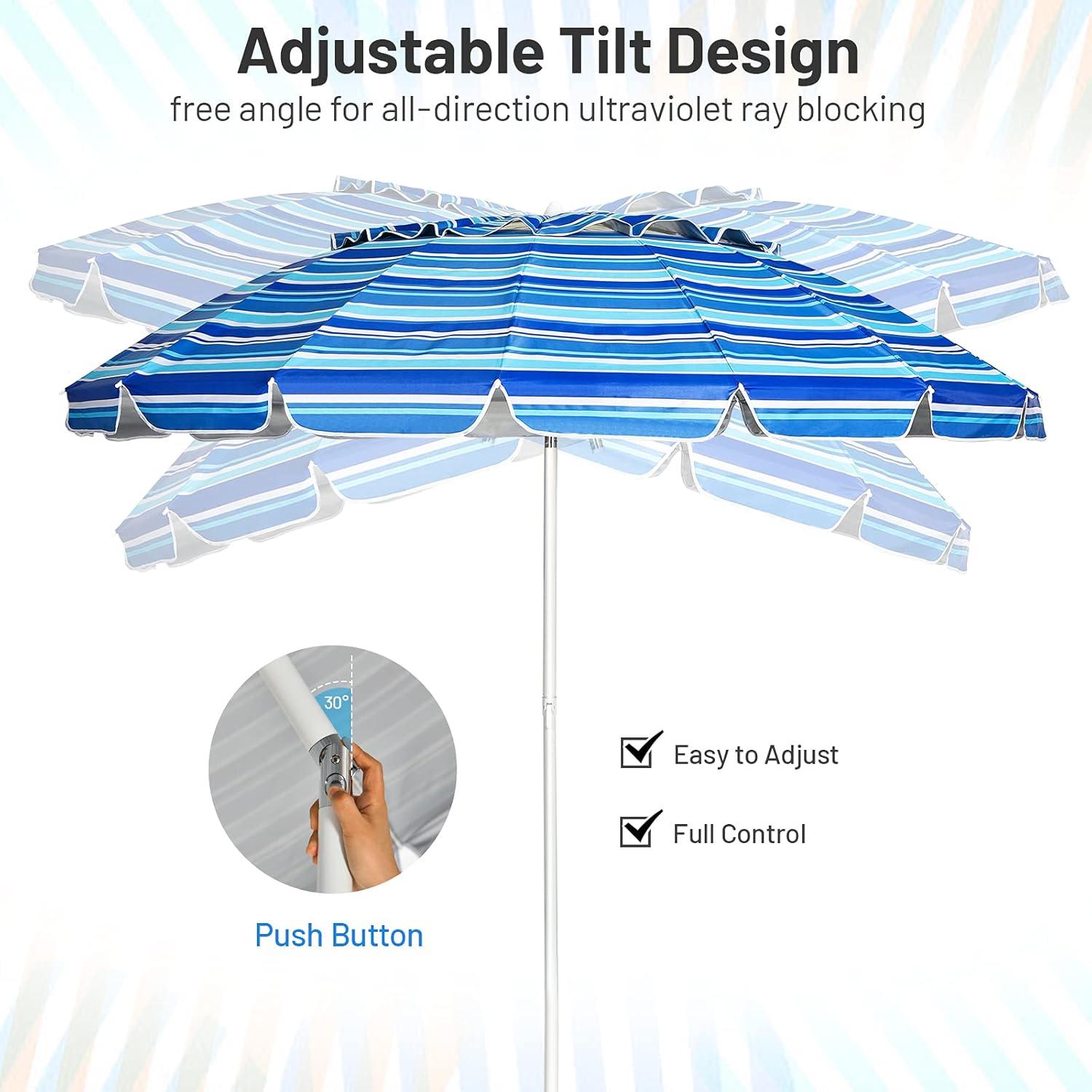 imageGiantex 8 Ft Beach Umbrella Patio Sunshade Umbrella with Sand Anchor ampamp Tilt Mechanism 16 Fiberglass Ribs AirVent Design Portable Sun Shelter Suitable for Seaside Backyard Poolside Market EntranceBlue