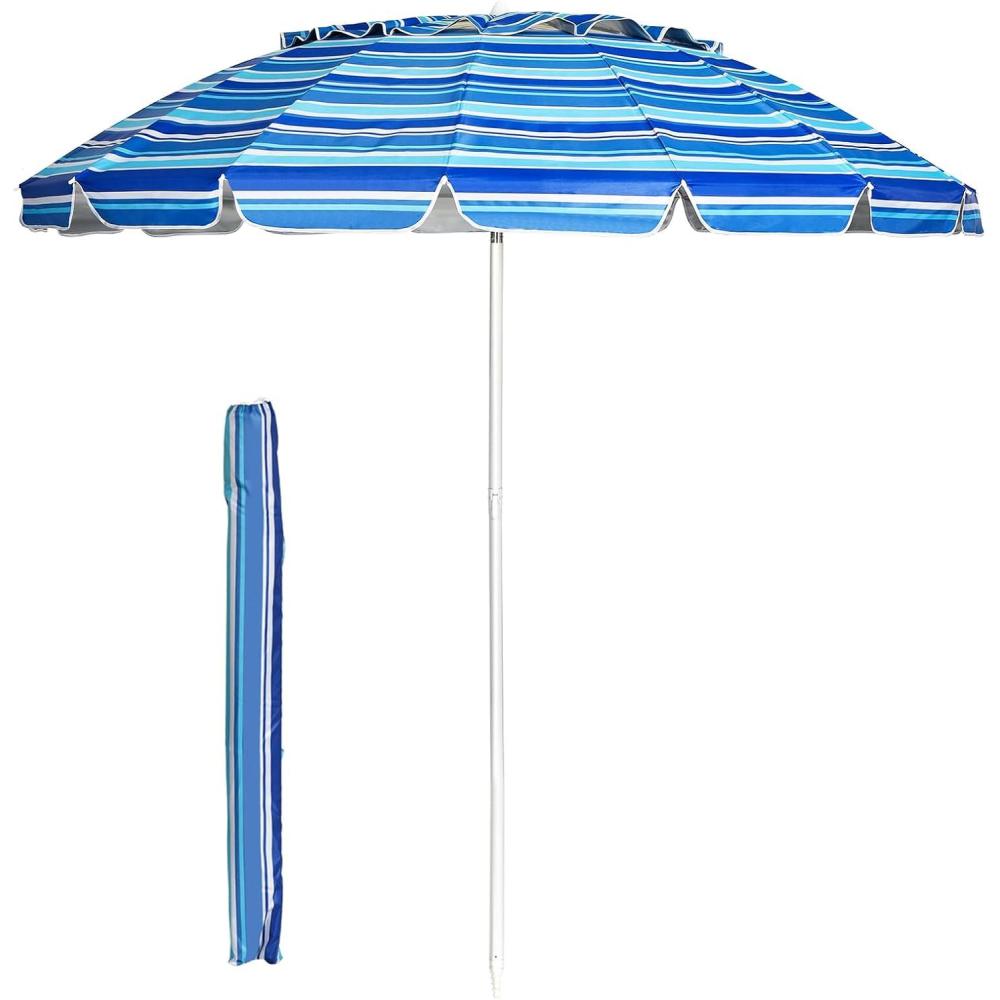 Giantex 8 Ft Beach Umbrella, Patio Sunshade Umbrella with Sand Anchor & Tilt Mechanism, 16 Fiberglass Ribs, Air-Vent Design, Portable Sun Shelter Suitable for Seaside, Backyard, Poolside, Market Entrance(Blue)