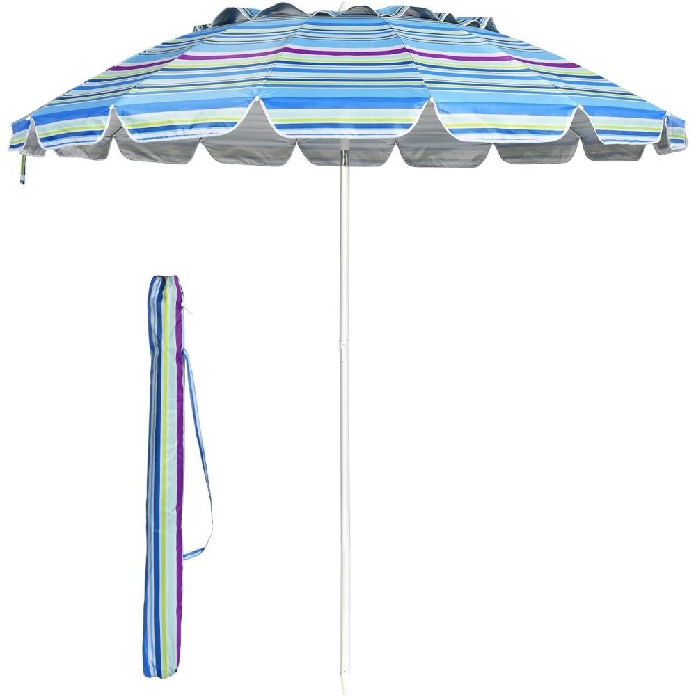 Giantex 7.2 Ft Beach Umbrella, Patio Sunshade Umbrella with Sand Anchor & Cupholder, Solid Steel Pole, Carrying Bag, Portable Sun Shelter Suitable for Seaside, Backyard, Poolside, Market Entrance(Rainbow)