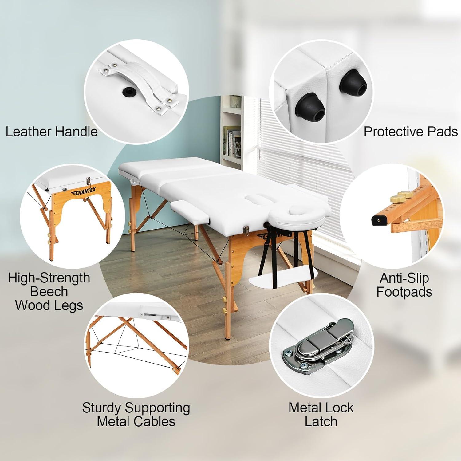 〖Built for Last〗: Made of reinforced beech frame with anti-slip foot pads and support steel cables, this massage bed is stable enough to support up to 485 lbs. In addition, the durable PVC leather with 2'' thick high-density sponge not only offers comfortable and breathable using experience, but also can be maintained with ease.