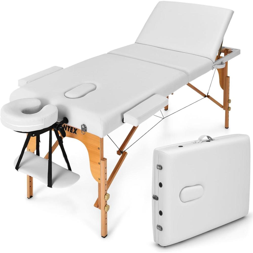 Giantex 84inch Folding Massage Table Lash Bed, Portable 3 Sections Spa Salon Tattoo Bed with Face Cradle Armrests Wooden Legs, Professional Massage Bed Height Adjustable with Carry Case (Black)(White)