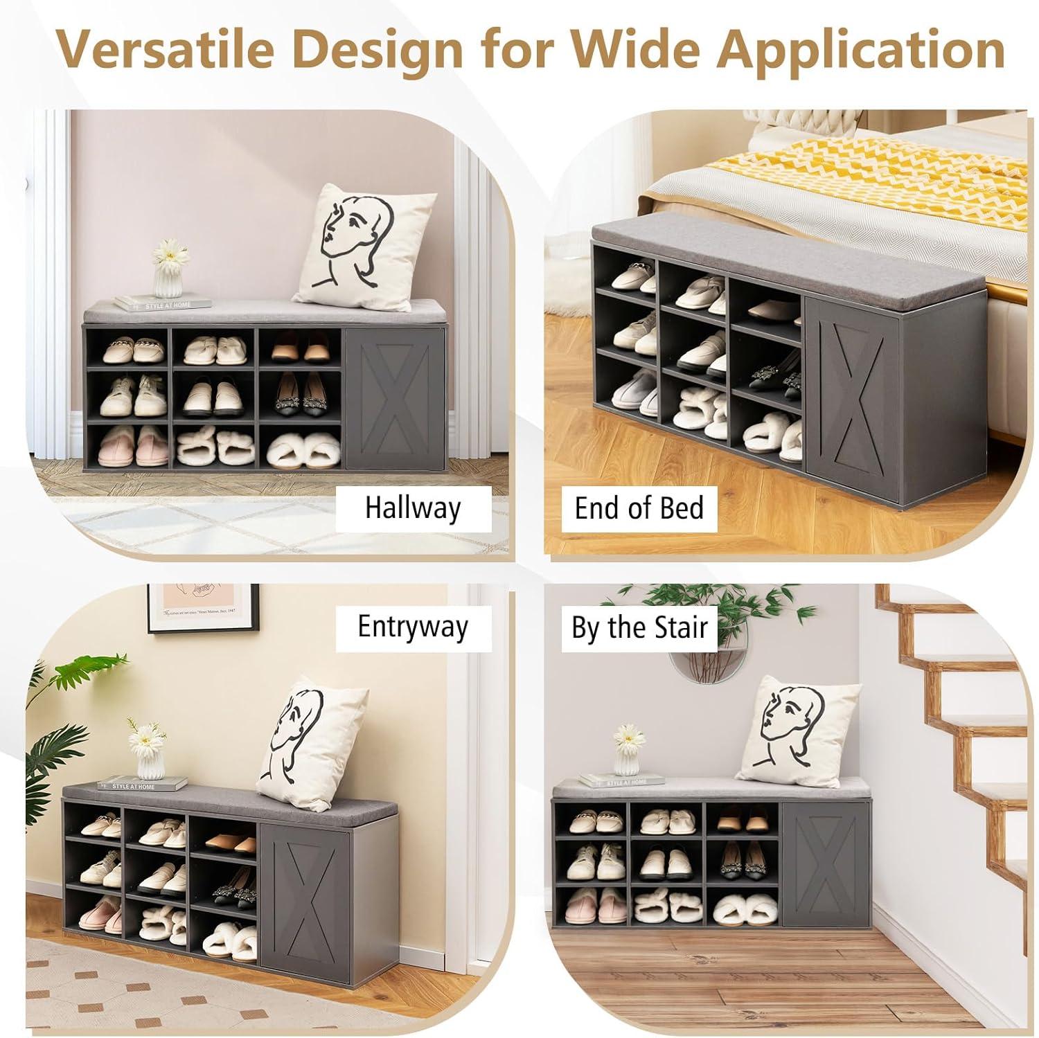 [ Modern Style for Wide Application ]: With industrial style and delicate wood vein, our 3-tier shoe bench injects a charming flair to your entryway, hallway, living room, bedroom, etc. It can be used as a shoe bench, a window seat or a bed end stool, meeting your different needs.
