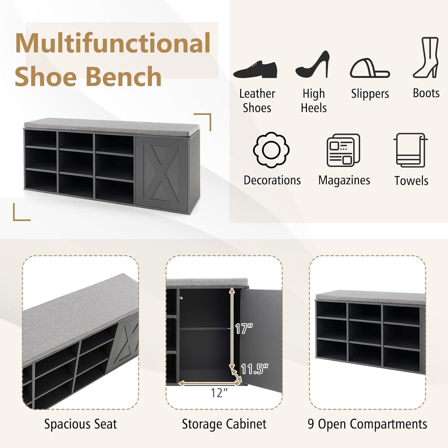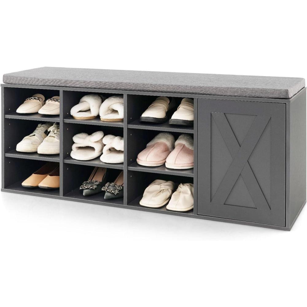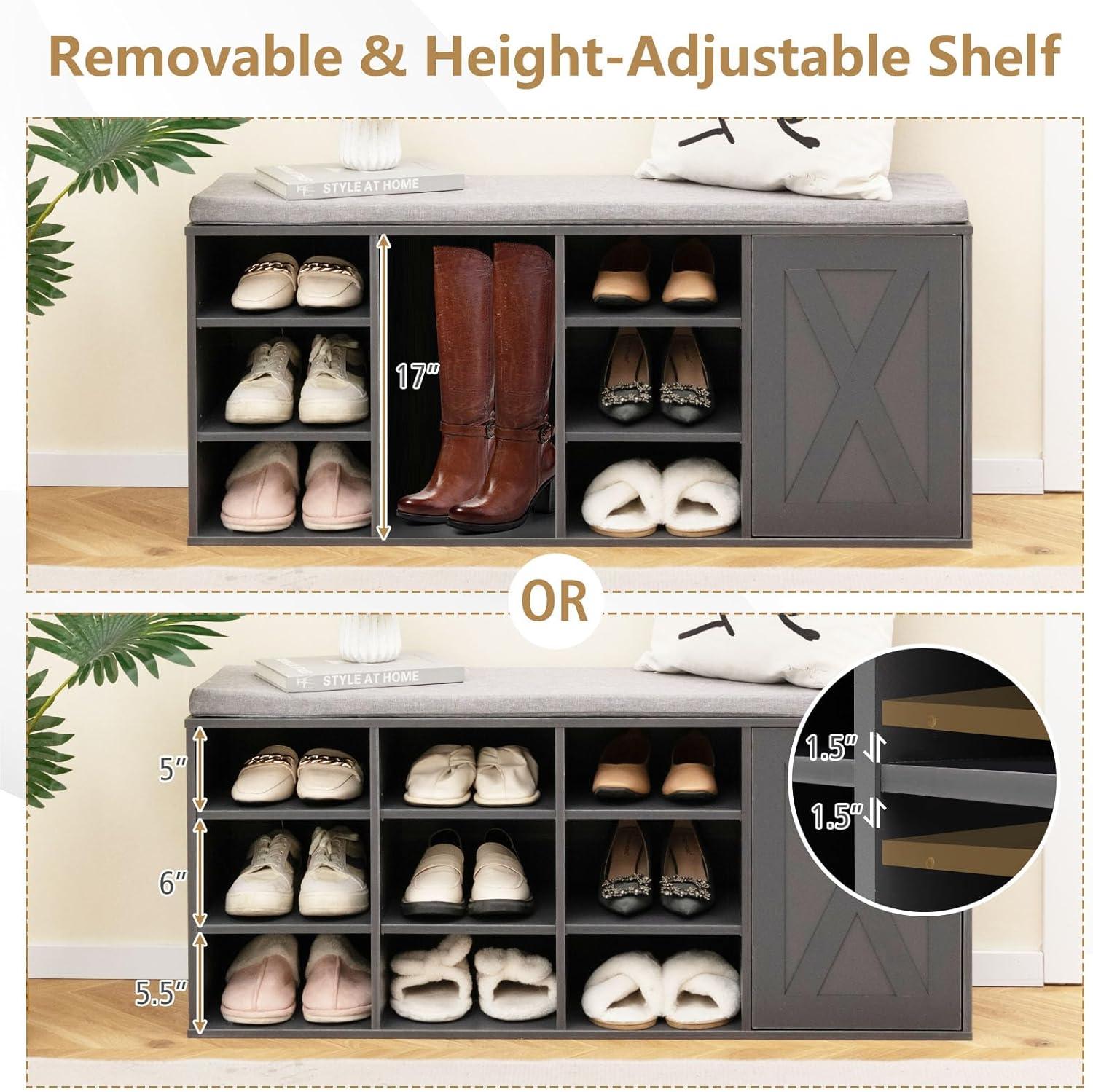 [ Removable & Adjustable Shelves ]: Our 9-rack shoe bench offers you enough space to store your leather shoes, high heels, slippers or boots. Each rack is removable and height-adjustable. So you can conveniently remove the shelf to acquire higher storage space. Thus, it’s ideal for items of different sizes.