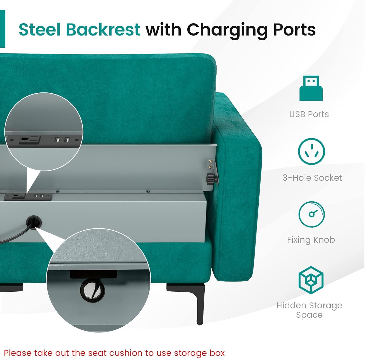 Designed with steel backrest with fixing knobs, USB ports, 3-hole socket and hidden storage box