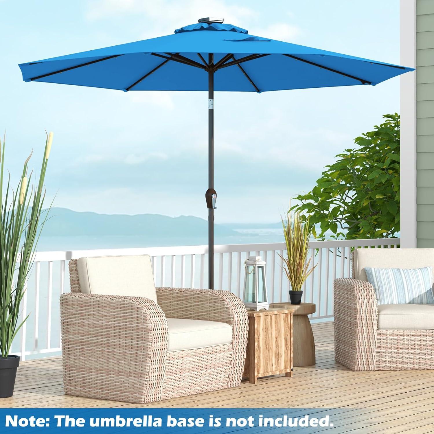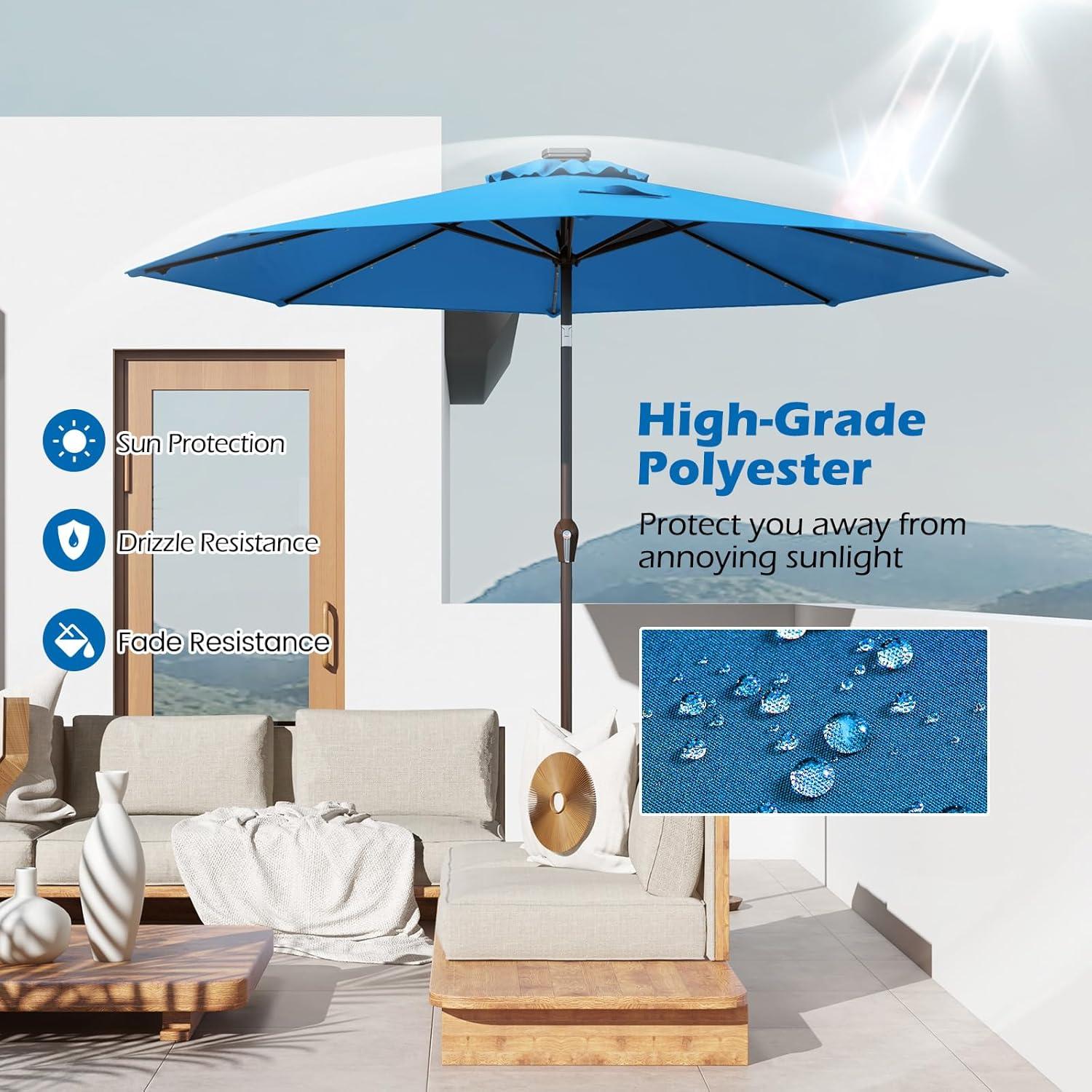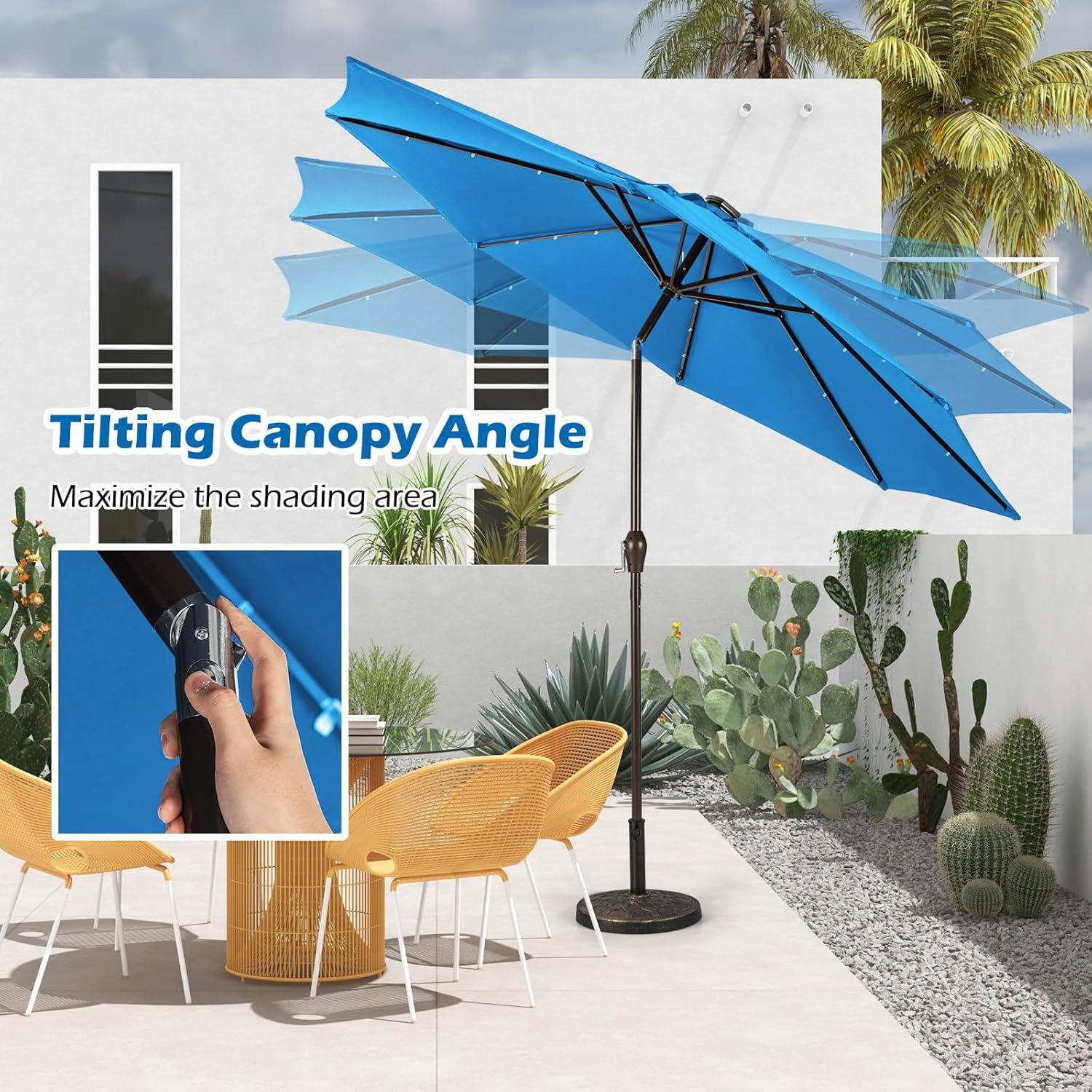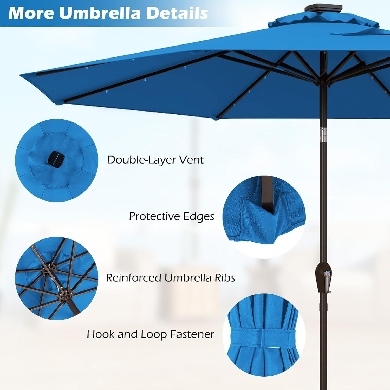 Giantex 9ft/10ft Outdoor Patio umbrella with Solar Lights, Table Market Umbrella with Crank and Push-button Tilt System, Solar LED Lighted Patio Umbrella for Backyard Deck Pool Beach(Blue)