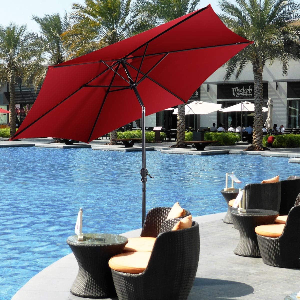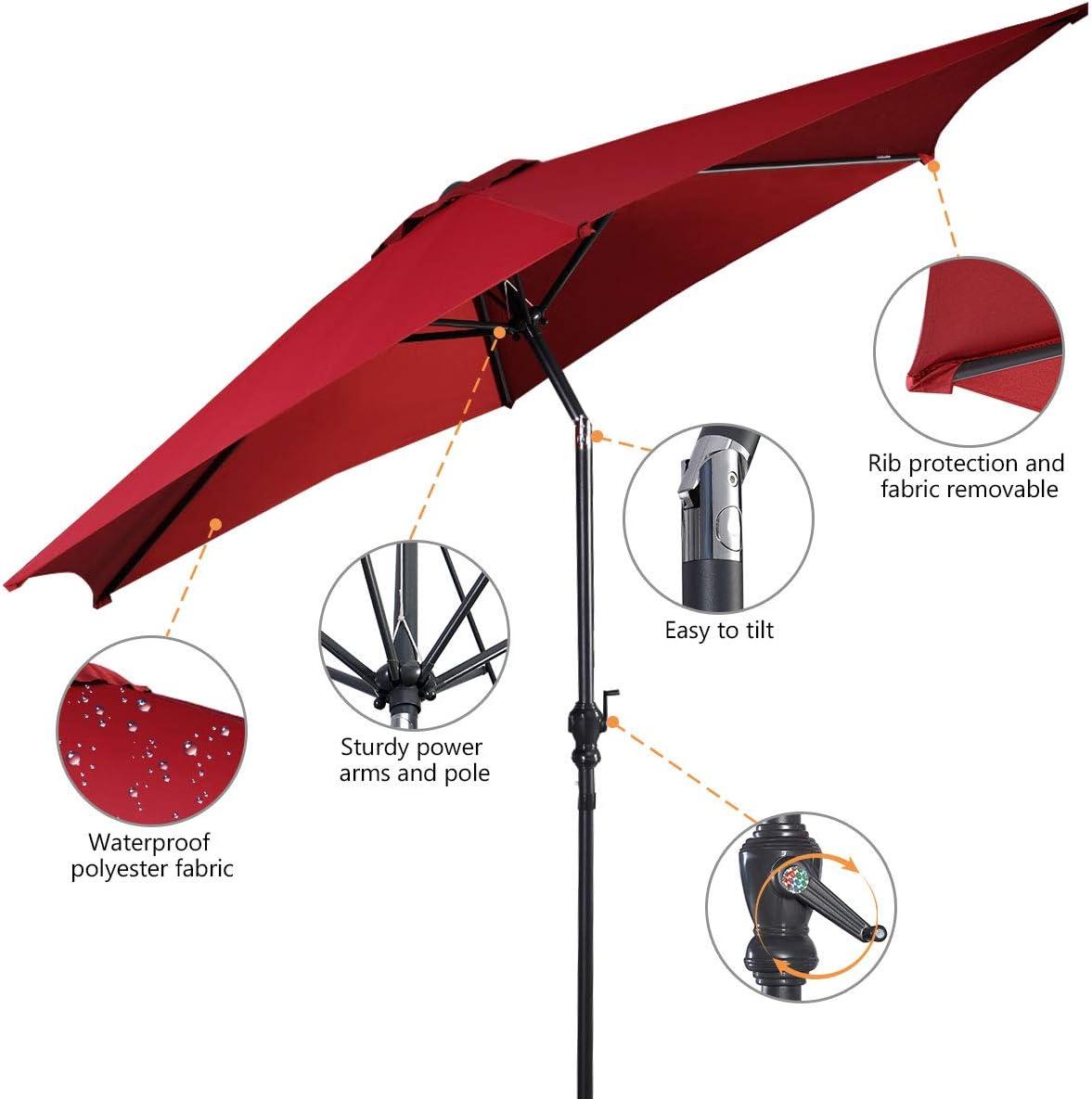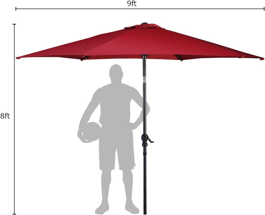 Giantex 9ft Patio Umbrella Outdoor, Market Table Umbrella w/Push Button Tilt and Crank, 180G Polyester Fabric and Sturdy Ribs, Sun Canopy Umbrellas for Patio Garden Beach Deck Pool(Burgundy)