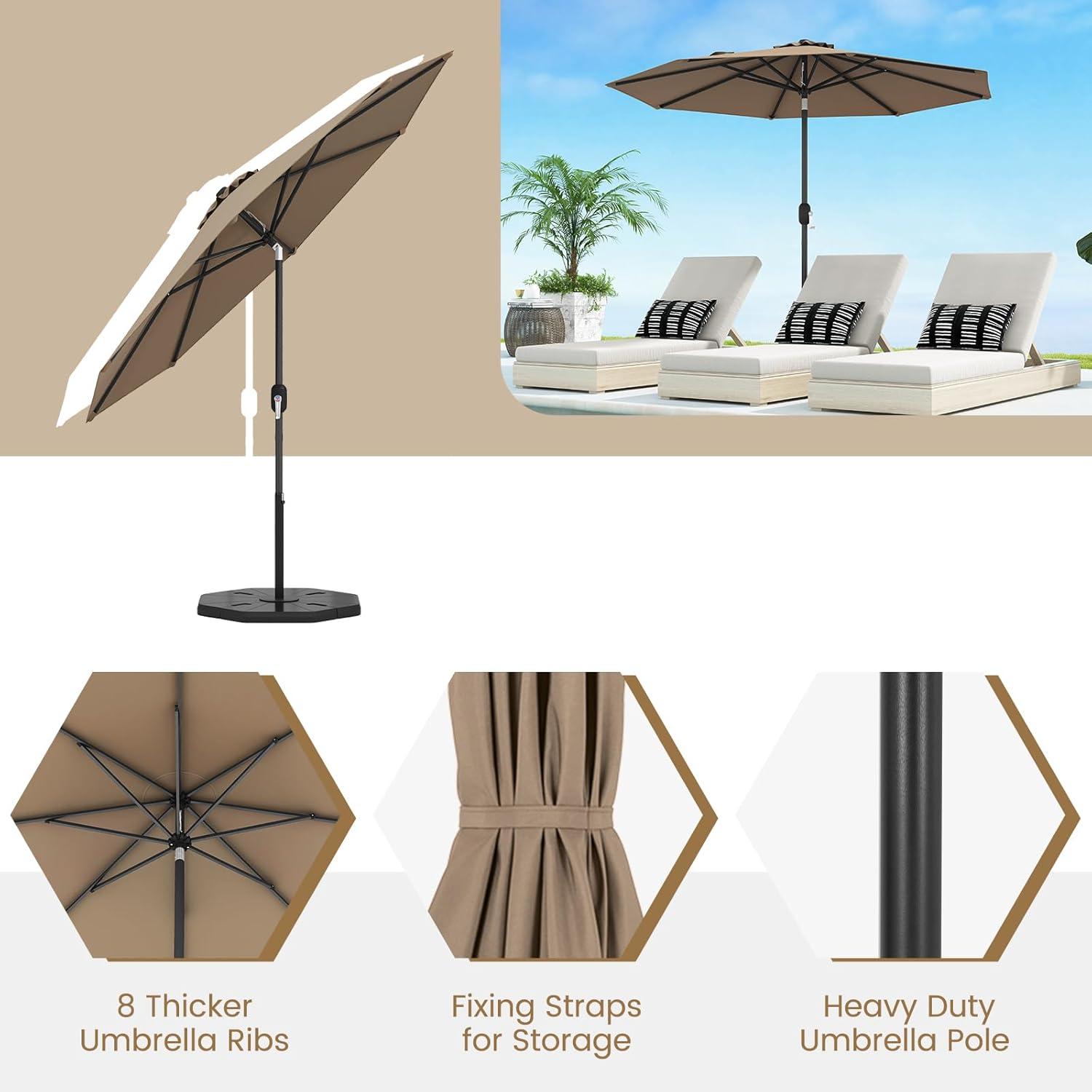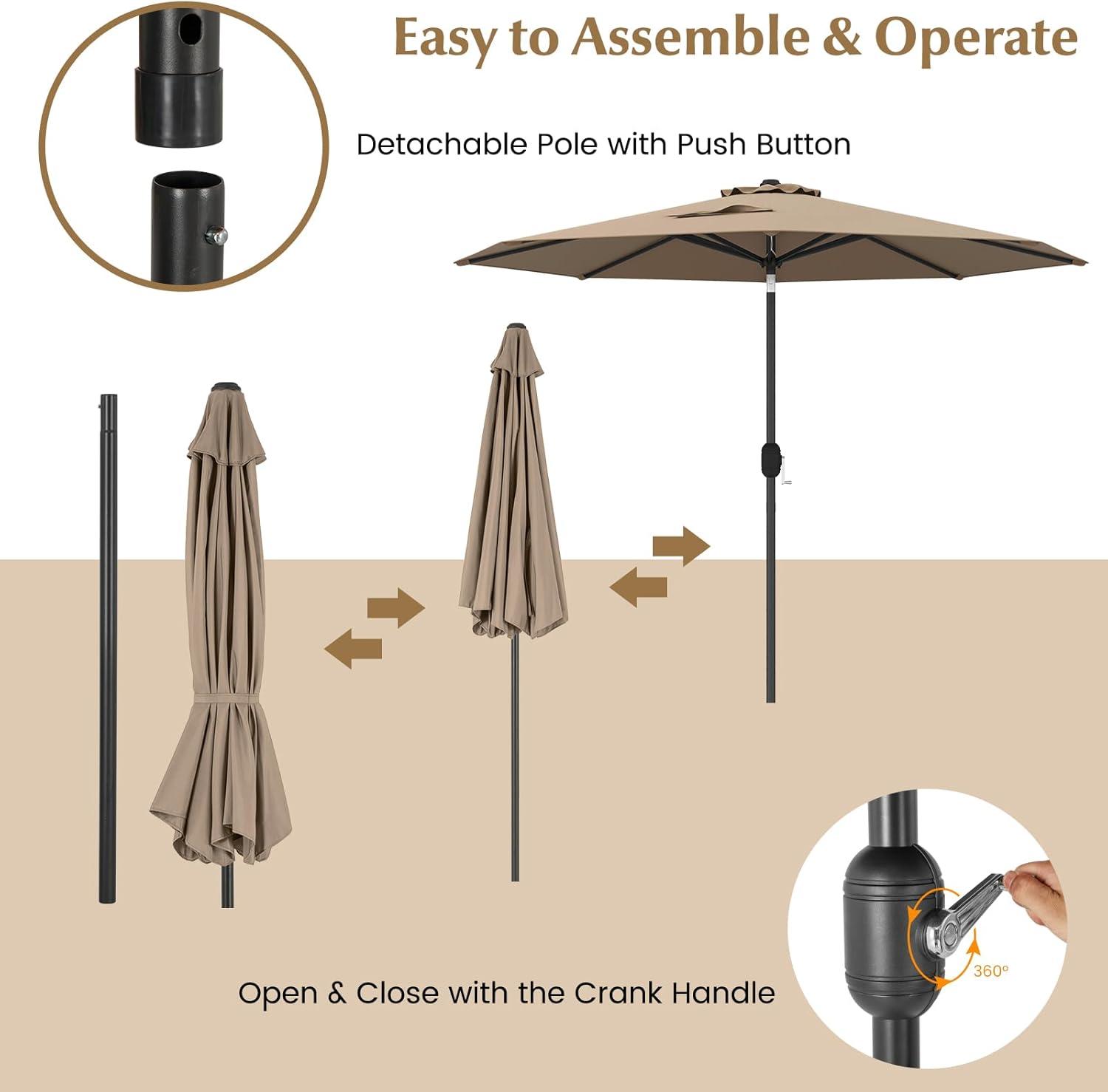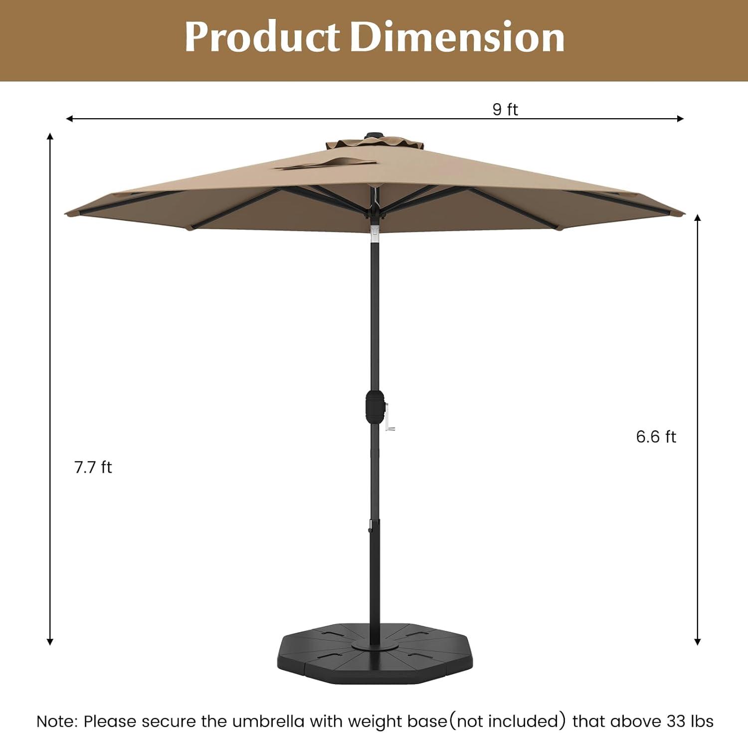 Giantex 9ft Patio Umbrella Outdoor, Market Table Umbrella w/Push Button Tilt and Crank, 180G Polyester Fabric and Sturdy Ribs, Sun Canopy Umbrellas for Patio Garden Beach Deck Pool(Tan)