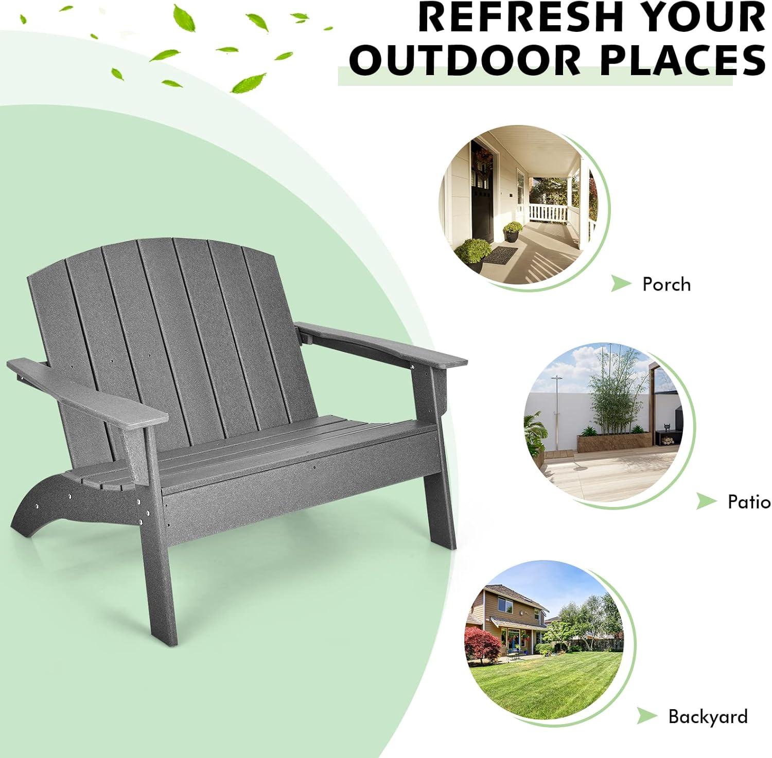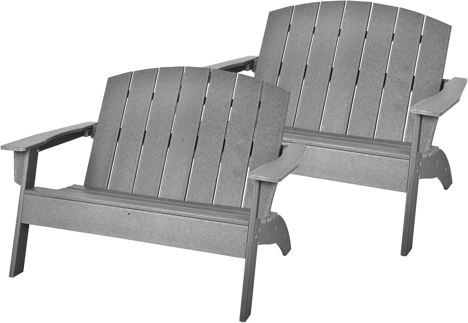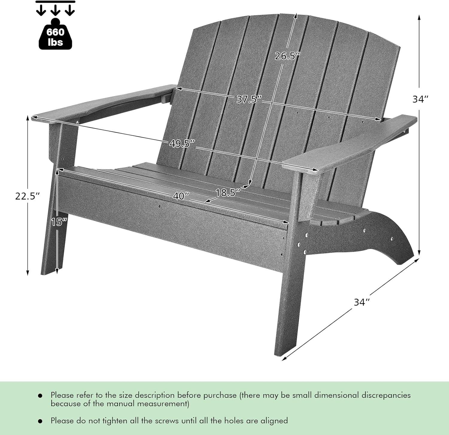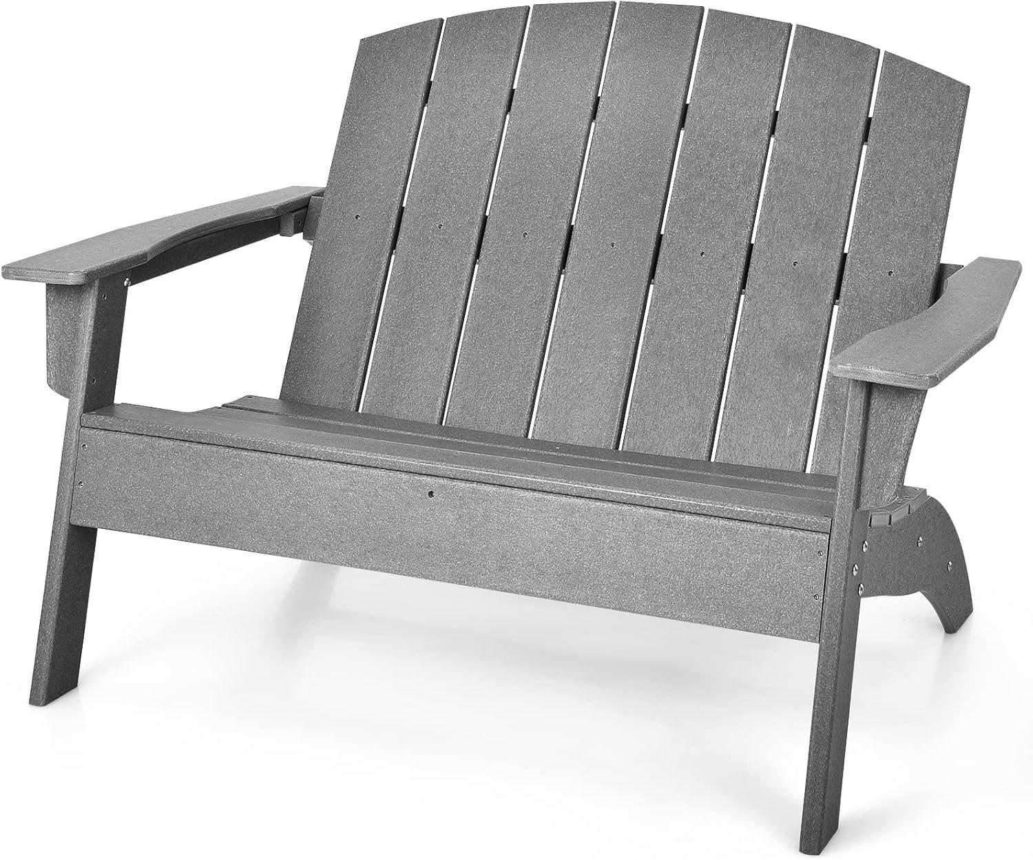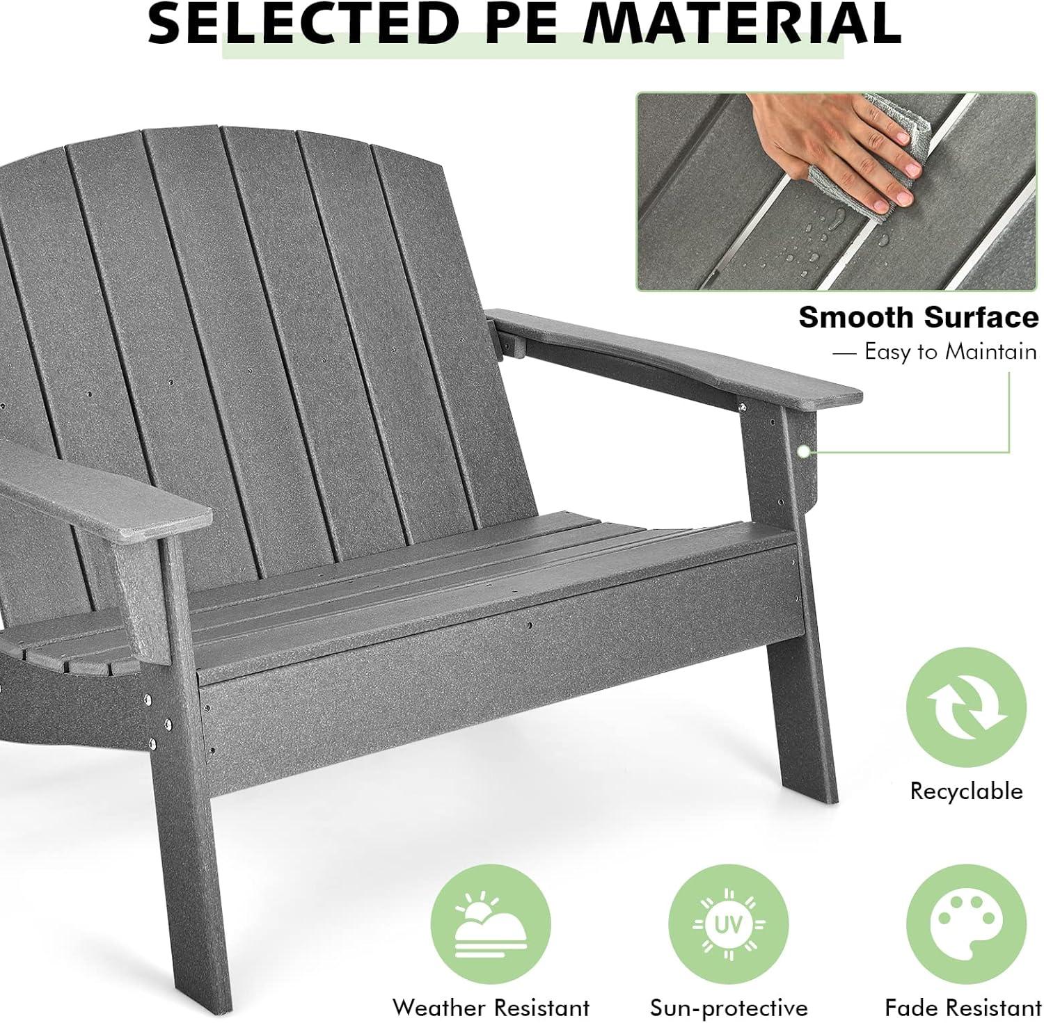 Giantex Adirondack Chair Outdoor Loveseat, High Density Polyethylene HDPE Material Adirondack Chairs Set of 2 People, Patio Adirondack Bench for Porch, Garden, Backyard Fire Pit Chair (1, Gray)(Grey)