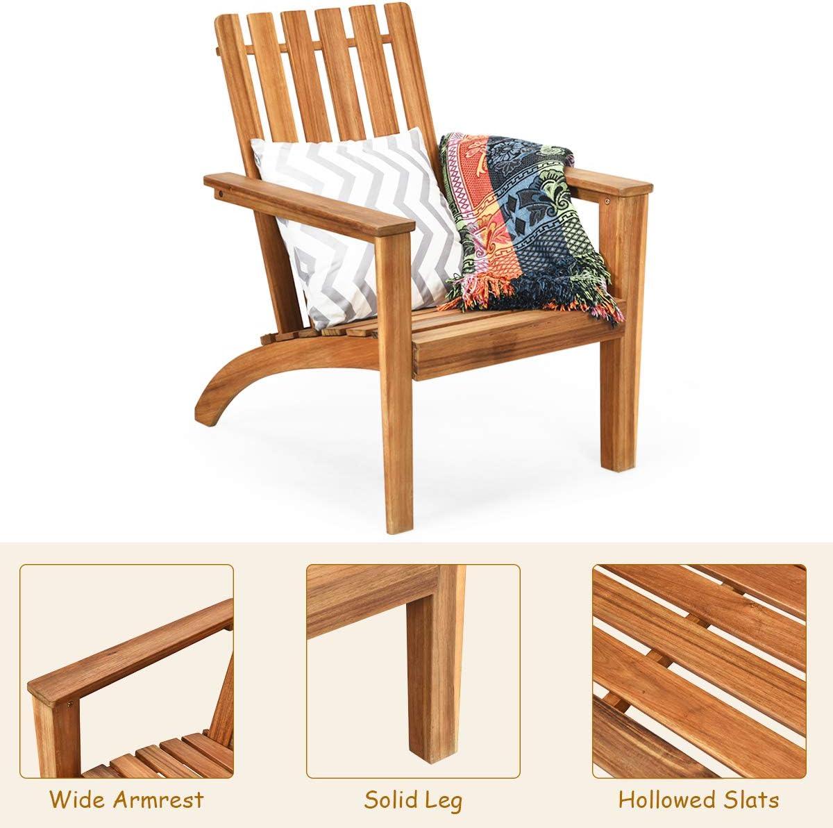 Giantex Adirondack Chair Acacia Wood Outdoor Chairs with 350 lbs Weight Capacity, Weather Resistant Lounge Armchair for Yard, Patio, Garden, Poolside, Balcony, Deck Fire Pit Chairs, Gray(Grey)