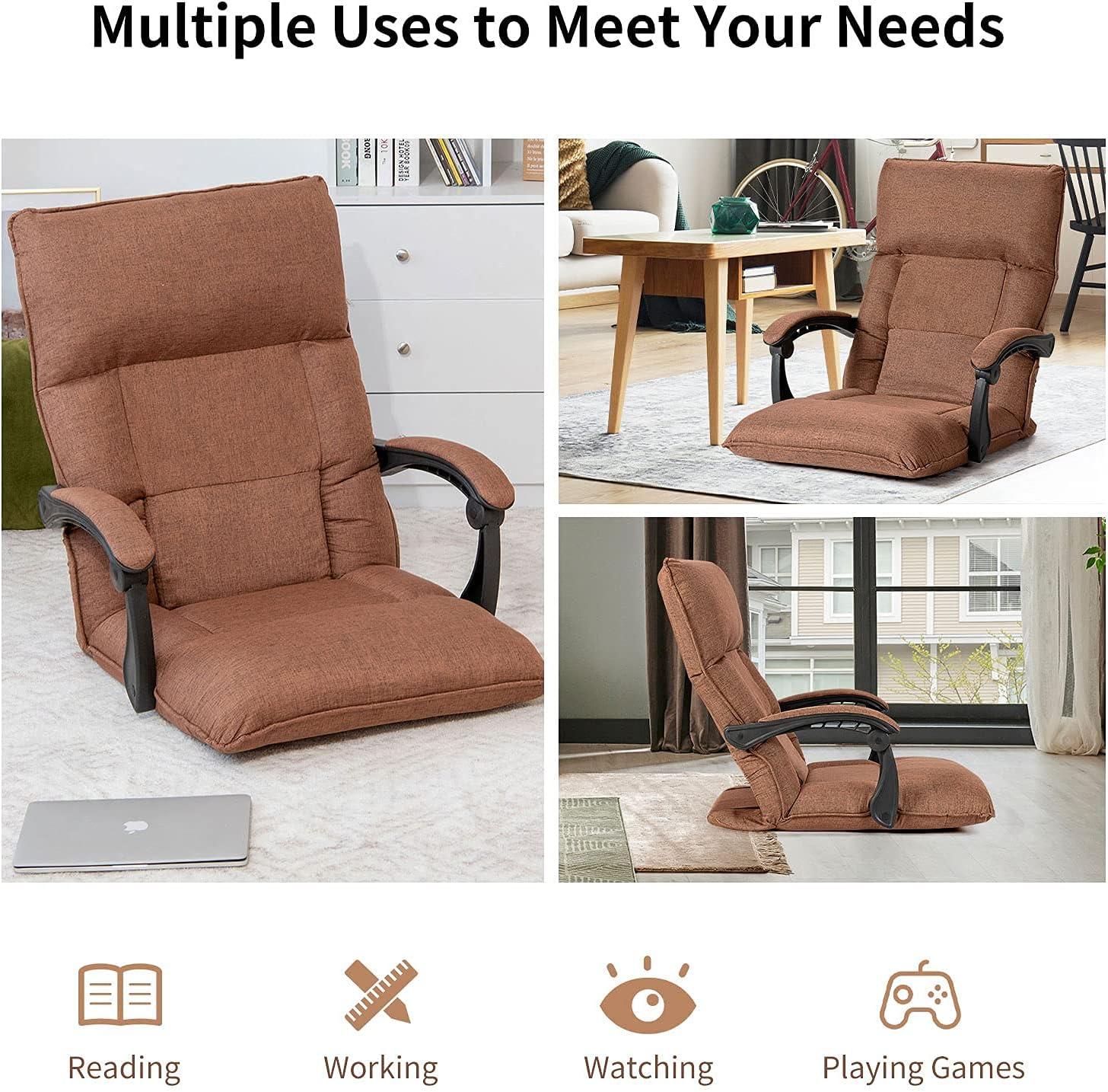 Supported by steel frame and ABS armrests, this lazy sofa is built to last for daily use. Fully padded with sponge and covered with linen, it has a soft and breathable surface with comfortable sitting experience. The backrest, headrest, and waist area all are adjustable with 14 positions, which functions ergonomically to give you enough support. Fully adjustable parts provide you a lot of positions to handle all kinds of social activities, like reading, gaming and resting with super comfort and flexibility. And moreover, the linkage armrests will adjust with the back of chair, making it more comfortable to use. It can be stored flat under your sofa or bed and with no assemble step, this floor sofa is ready to use right out of the package.