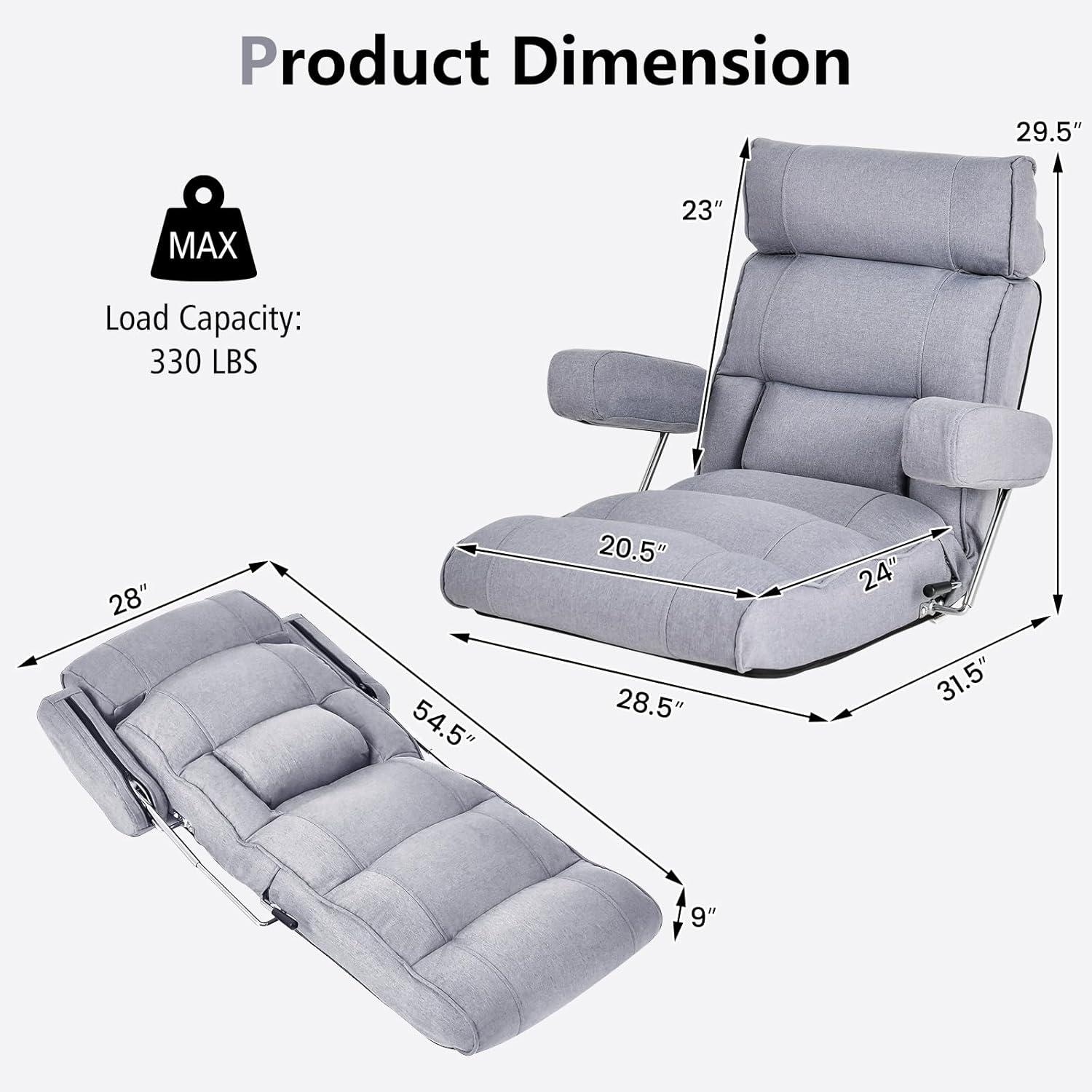 Giantex Adjustable Folding Sofa Chair - Lazy Floor Chair with Infinitely Adjustable Backrest, Extendable Armrest & Seat, Couch Recliner for Meditation, Reading, Gaming Floor Chairs for Adults (Gray)(Grey)