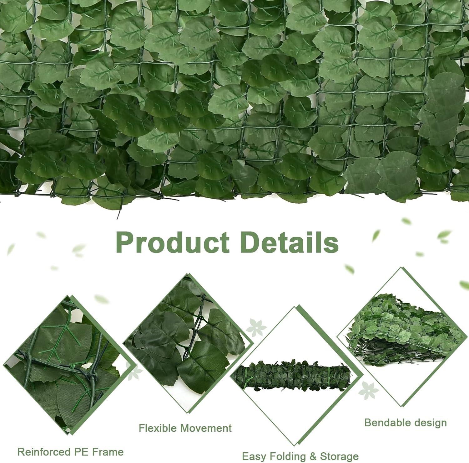 【Realistic Looking & Create Privacy】: The artificial hedge panel features 1908 verdant and dense sweet potato leaves that imitate the real leaves, helping create a realistic and vivid appearance. Moreover, the abundant leaves are placed close enough which would effectively protect your privacy.