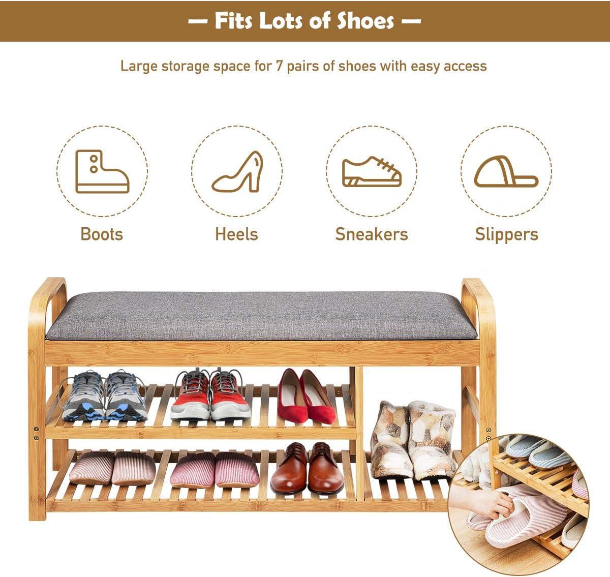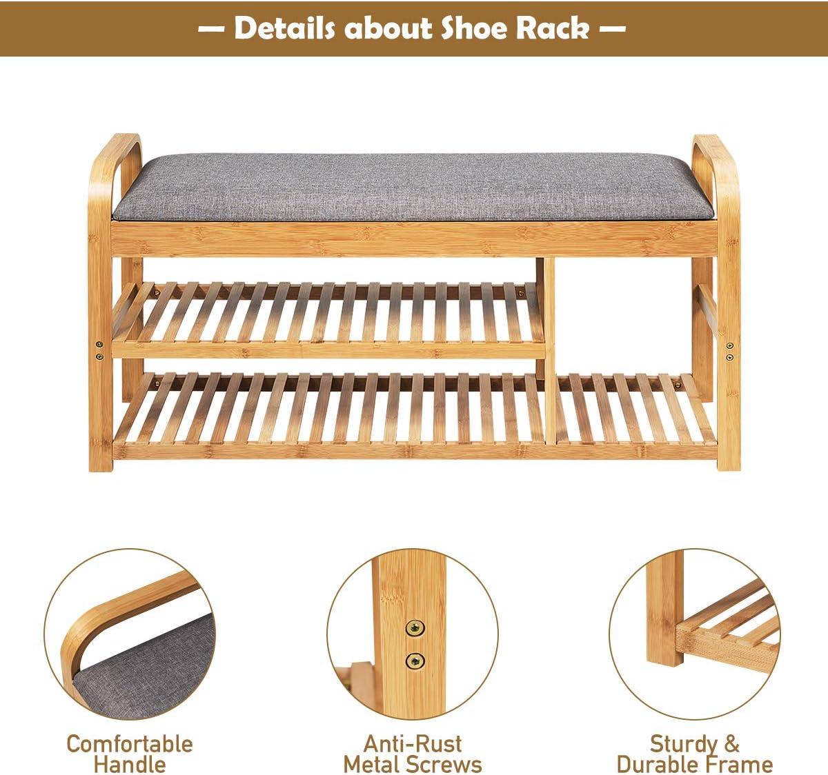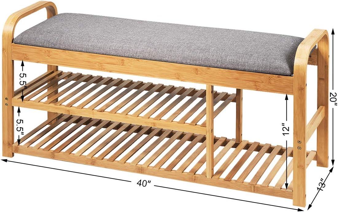 [Thick & Comfortable Cushion]: The cushioned seat is filled with high-density sponge, which has good elasticity for sitting to change shoes. And covered with breathable grey linen, the large seat is comfortable for two people to sit together and will not show the dirt.
