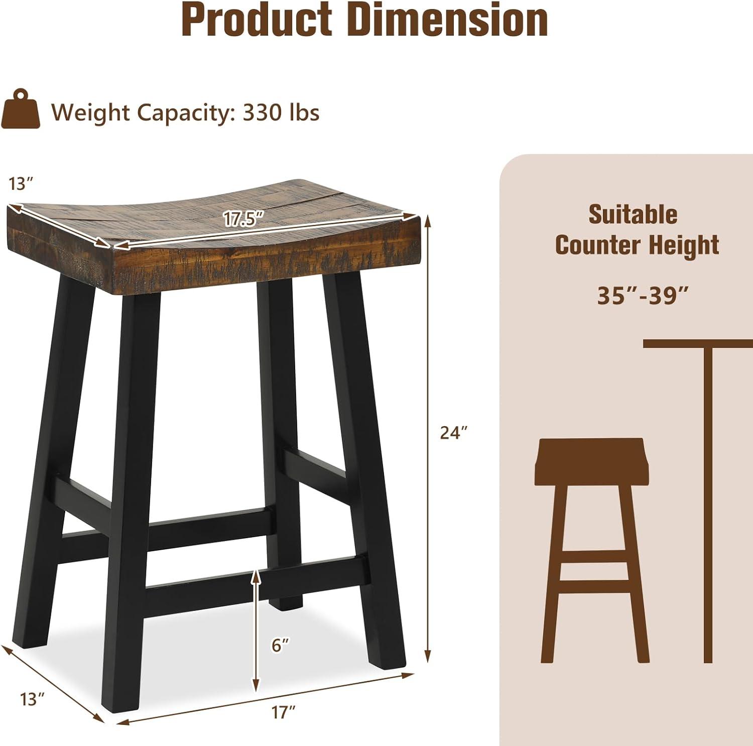 Giantex Bar Stools Set of 2, 24" Counter Height Saddle Stools, Bar Dining Chairs with Rubber Wood Frame & Footrest, Backless Barstools for Kitchen Island, Dining Room, Pub, Rustic Brown(1)