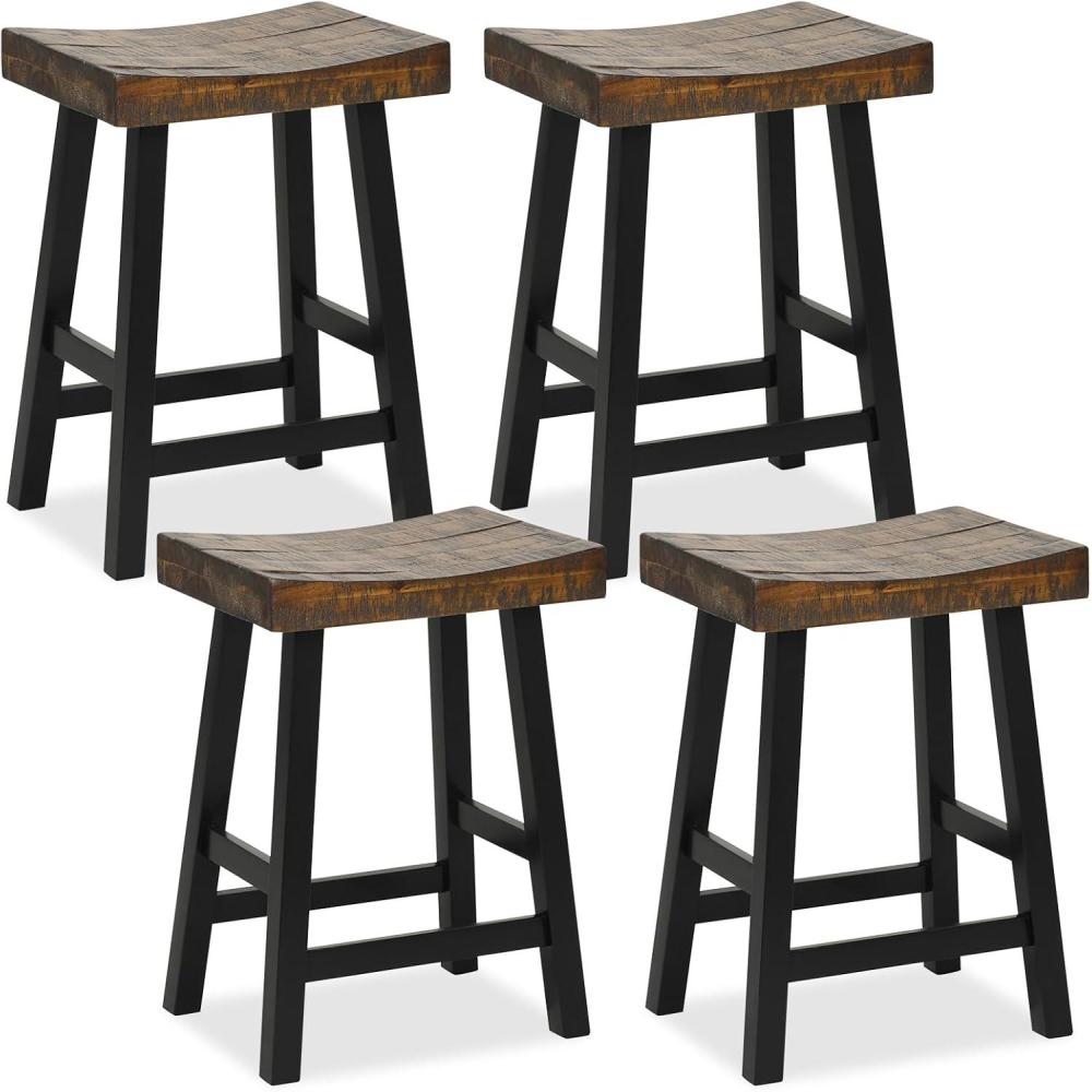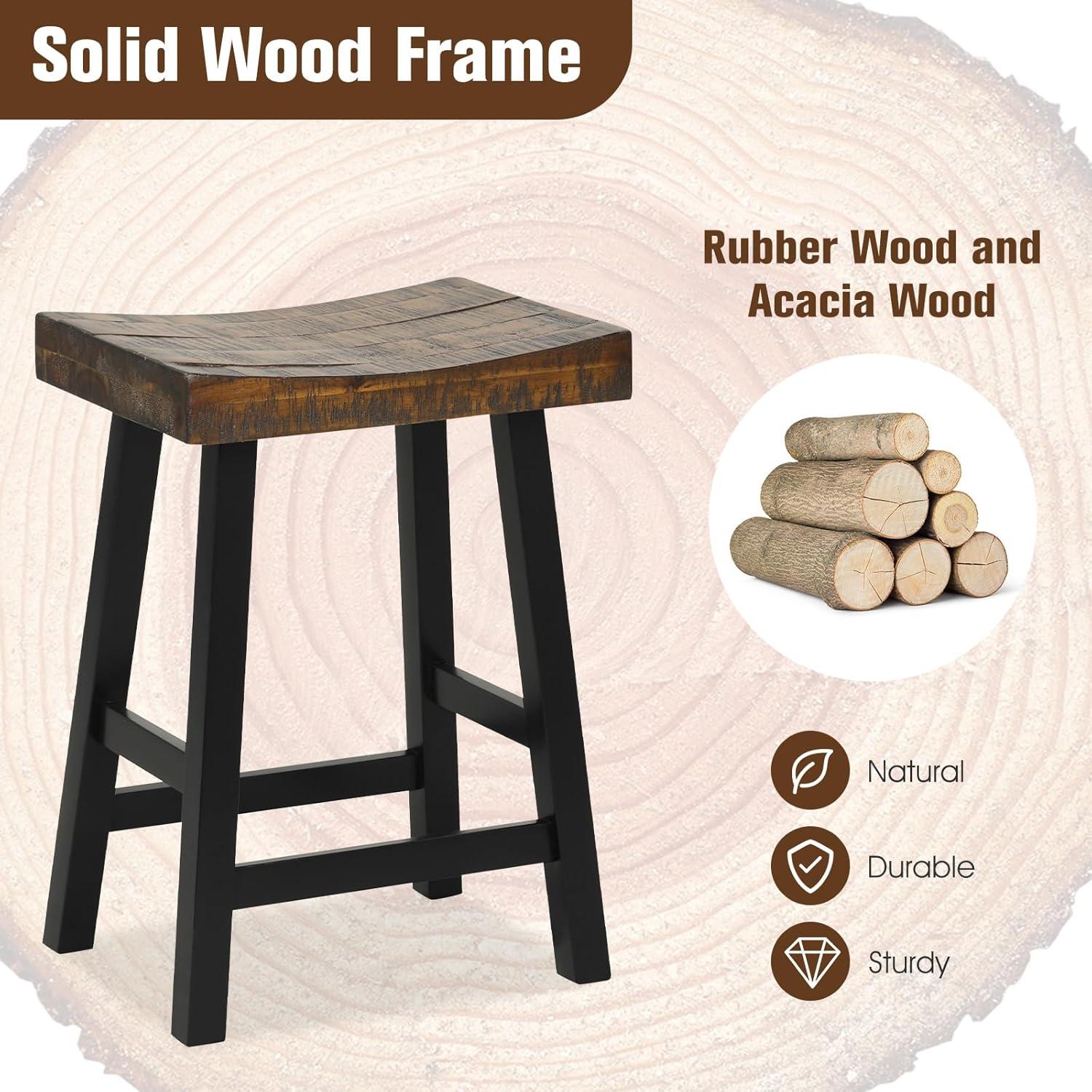 Giantex Bar Stools Set of 2, 24" Counter Height Saddle Stools, Bar Dining Chairs with Rubber Wood Frame & Footrest, Backless Barstools for Kitchen Island, Dining Room, Pub, Rustic Brown(2)