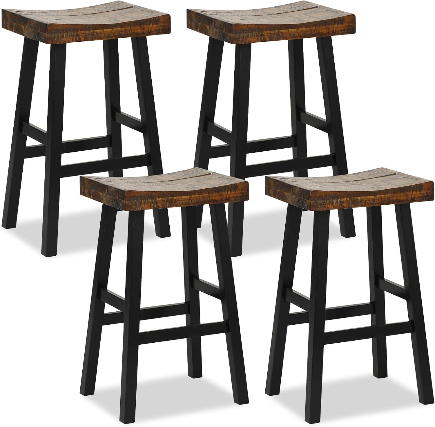 [Saddle Style Seat]: The bar stools feature an ergonomic saddle seat that provides a cozy sitting experience for you. Besides, the unique antique stool top imparts an elegant and timeless touch to the space.