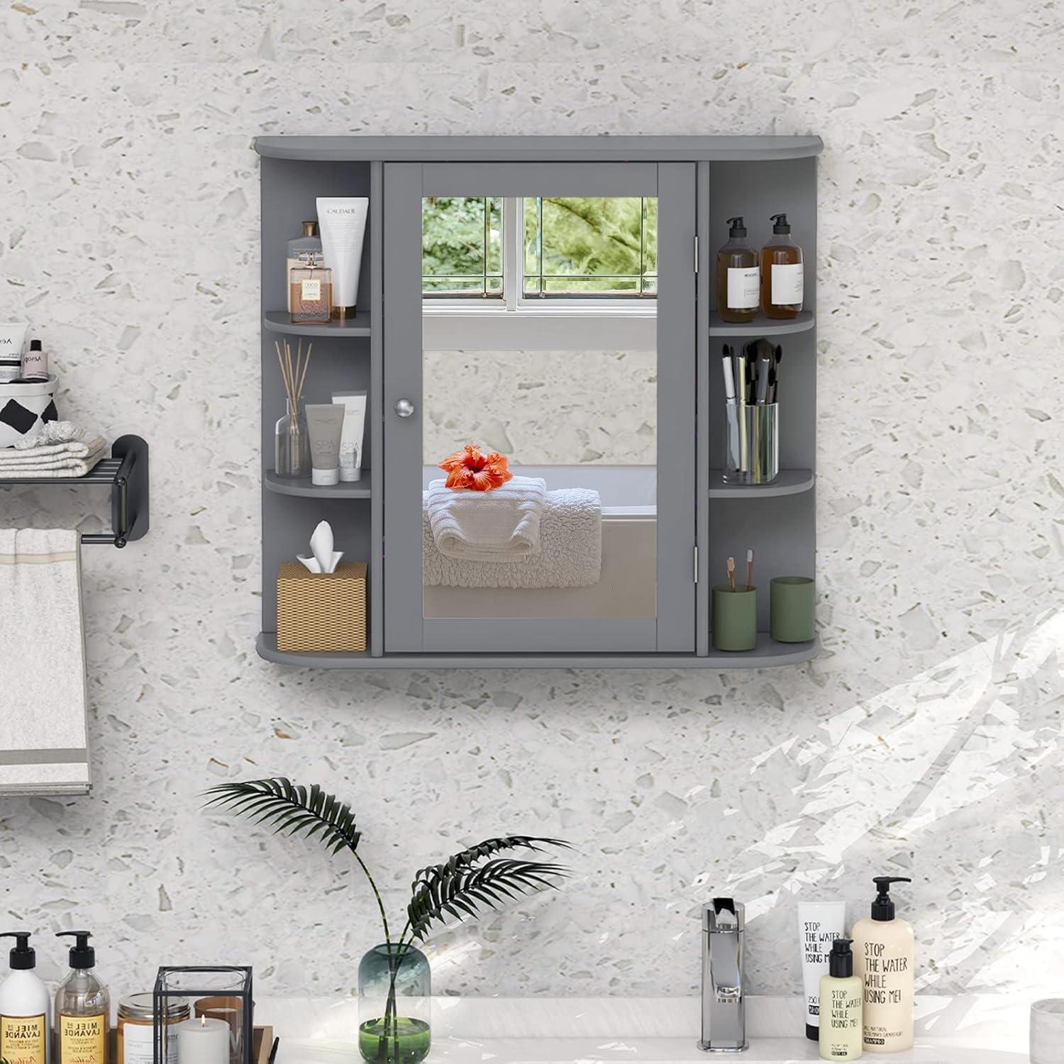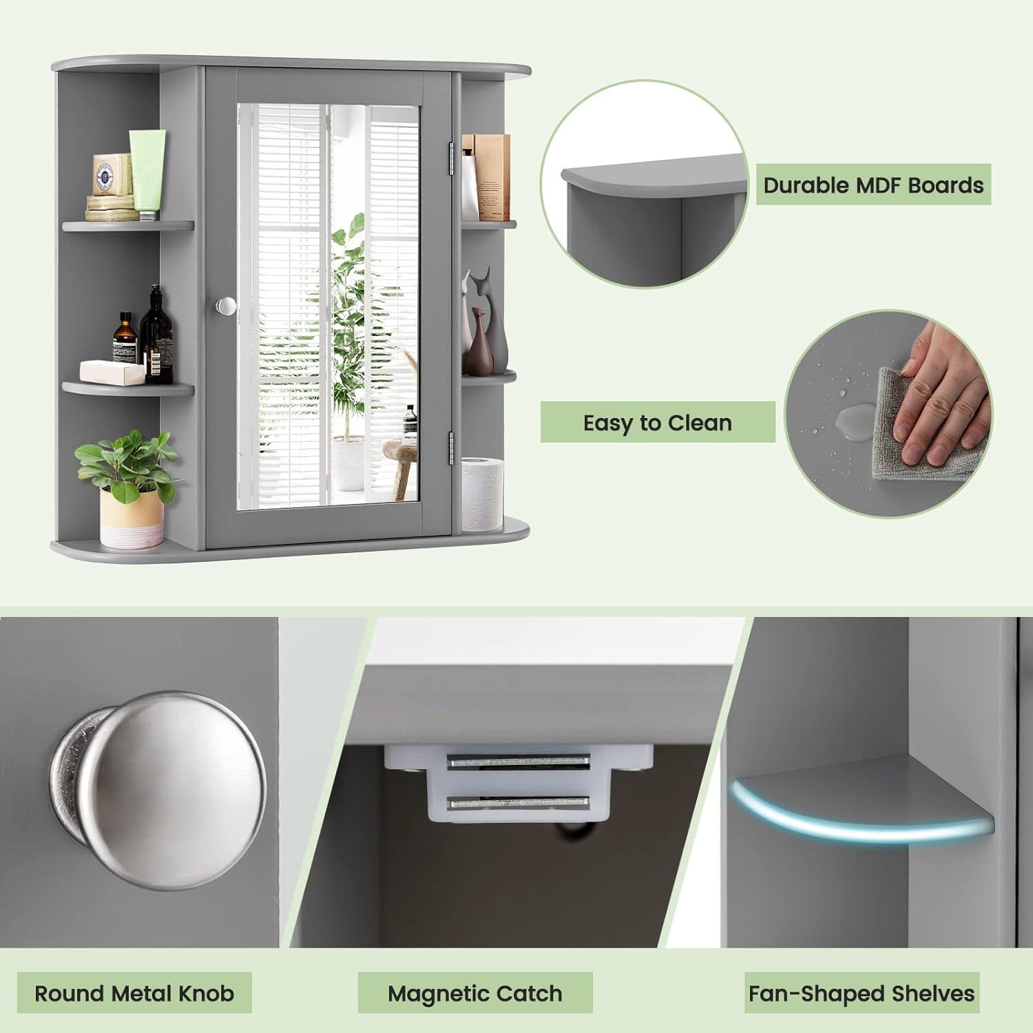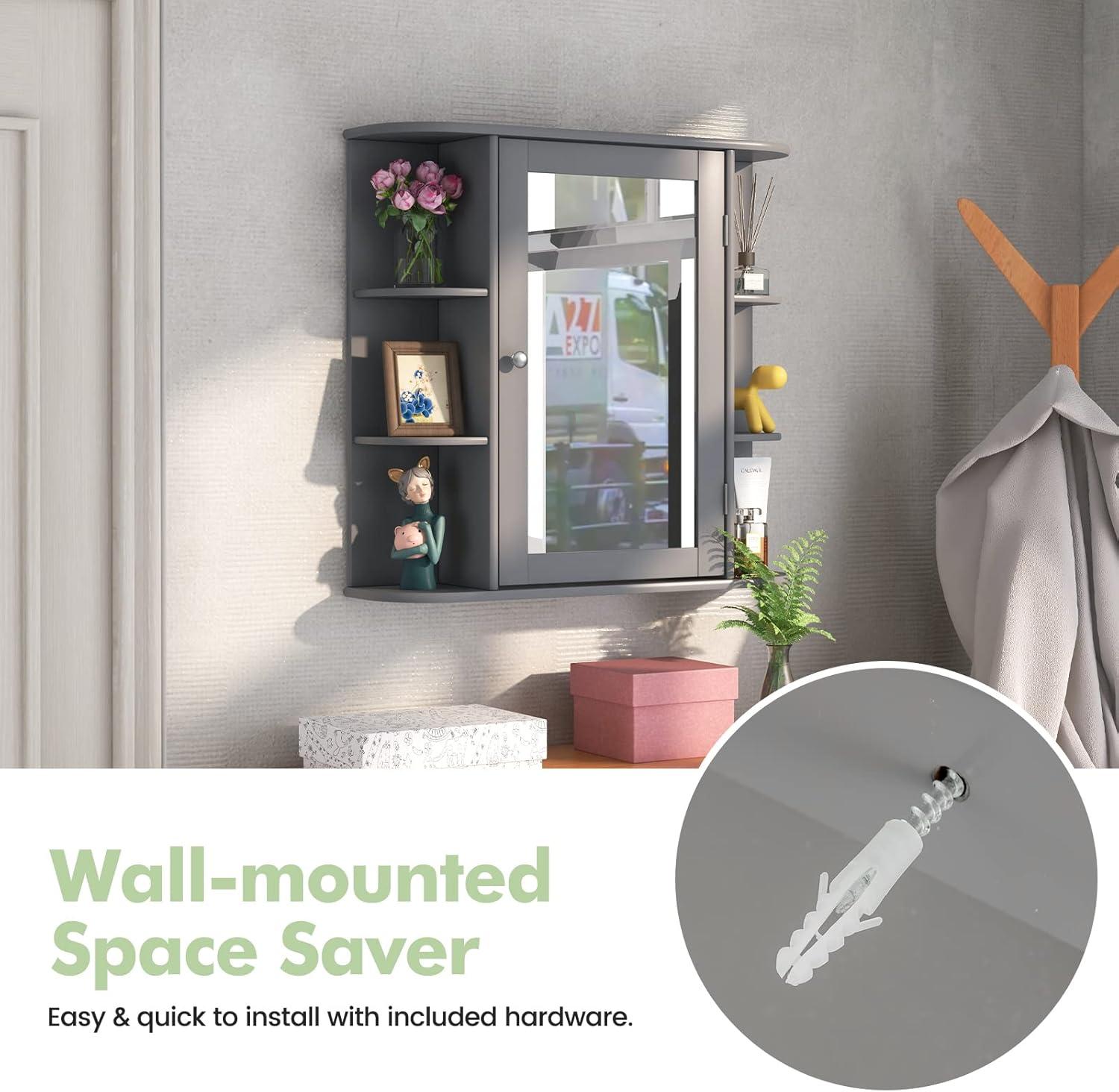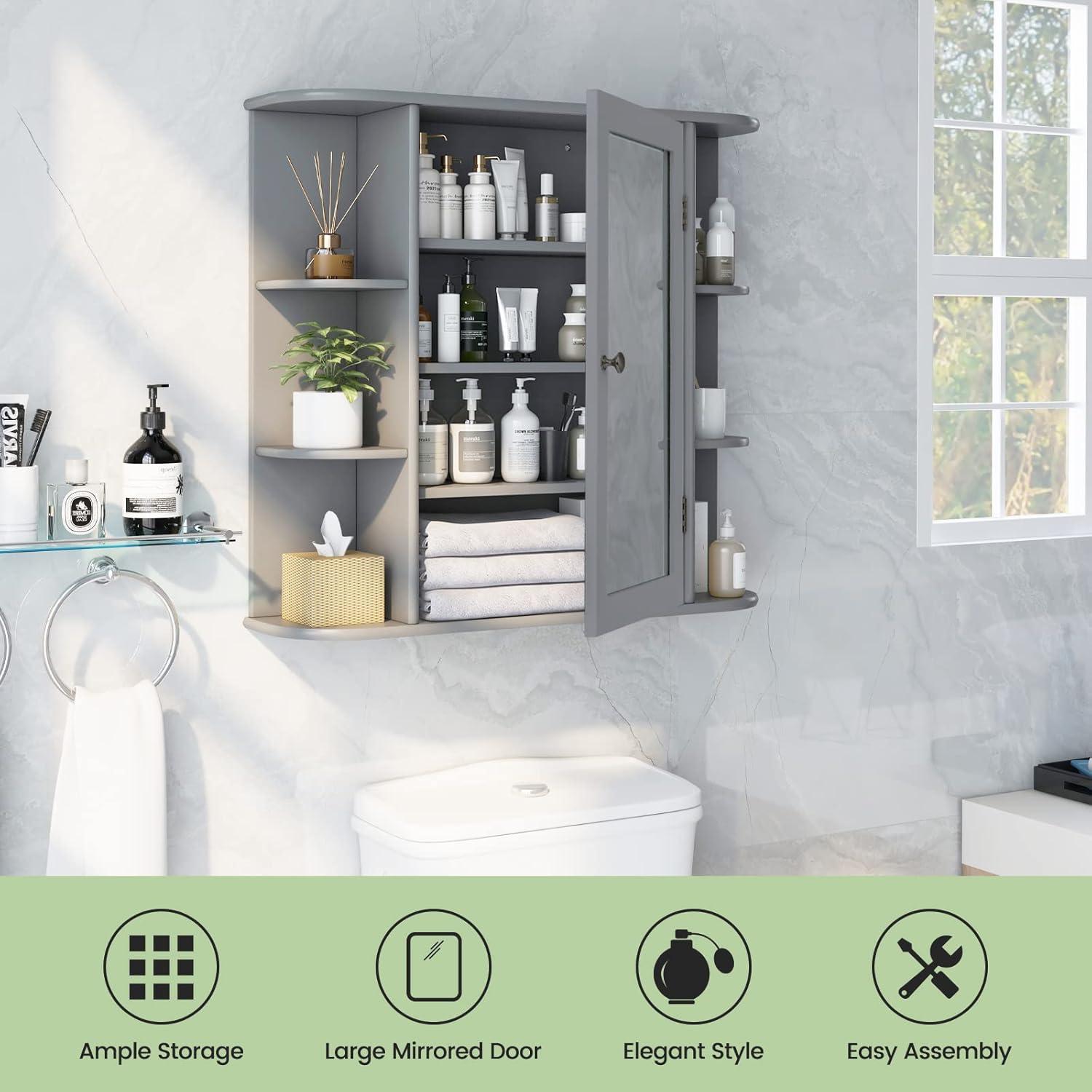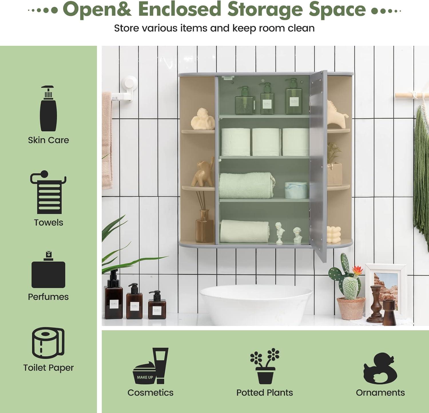 Giantex Bathroom Mirror Cabinet, Wall Mounted Medicine Cabinet with Mirrored Door & 4 Interior Shelves, 6 Open Shelves, Mounting Hardware, Space-Saving Storage Cabinet, White(Grey)