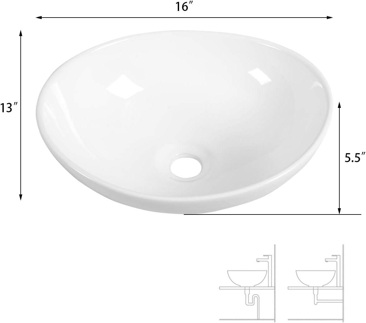 Color & Scratch Resistant :Our vessel sinks have a thick and smooth ceramic surface that ensures that the sink stays bright white, does not discolor, and maintains a new look, and the basin surface can withstand daily use without being easily scratched.