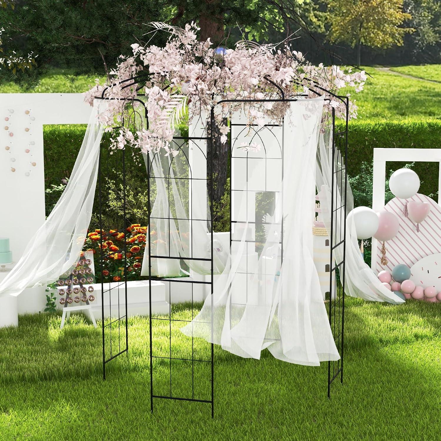 【Versatile Gazebo Trellis】: This 2-in-1 arch trellis is ideal for displaying climbing plants like roses, clematis, and wisteria, but its uses don't stop there. It can also be used as a stunning backdrop for outdoor events, providing a beautiful setting for party decorations like balloons, string lights, and ribbons.