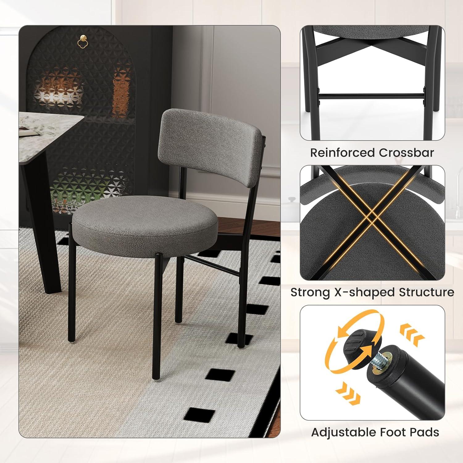 The seat and backrest of our dining chairs are wrapped in soft sherpa fleece, allowing you to sink into relaxation as you enjoy your meals or engaging conversations at the dining table. Additionally, the thick seat cushion with soft sponge filling will upgrade your comfort level. The curved backrest will provide optimal support during extended periods of sitting. Supported by robust metal legs, the armless kitchen chairs have been engineered to effortlessly withstand weights of up to 400 lbs. The adjustable foot pads not only enhance stability but also adapt seamlessly to any type of flooring, preventing wobbling. With a sleek and elegant design, our dining chairs effortlessly complement various decoration styles, whether in your living room, kitchen, or restaurant.