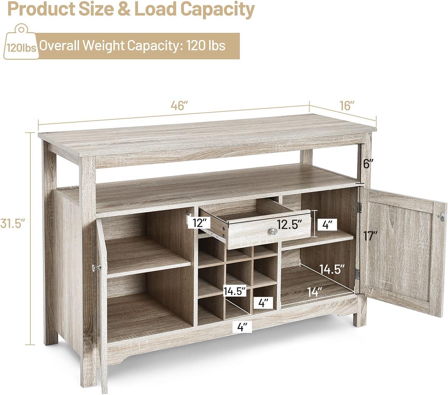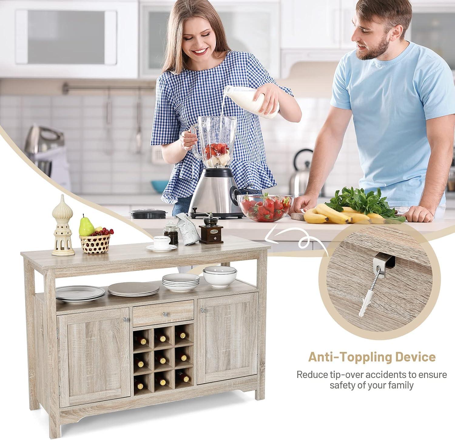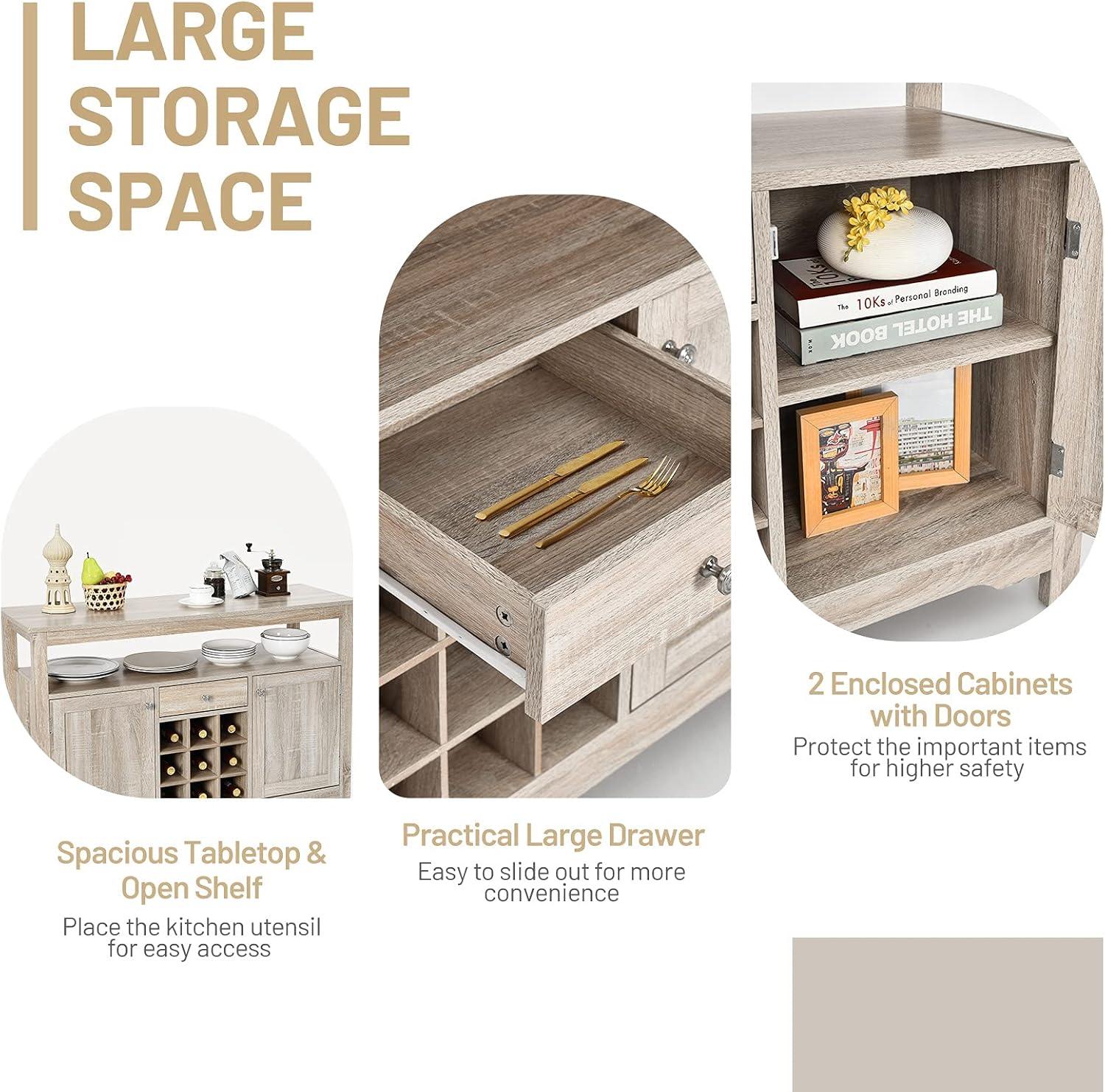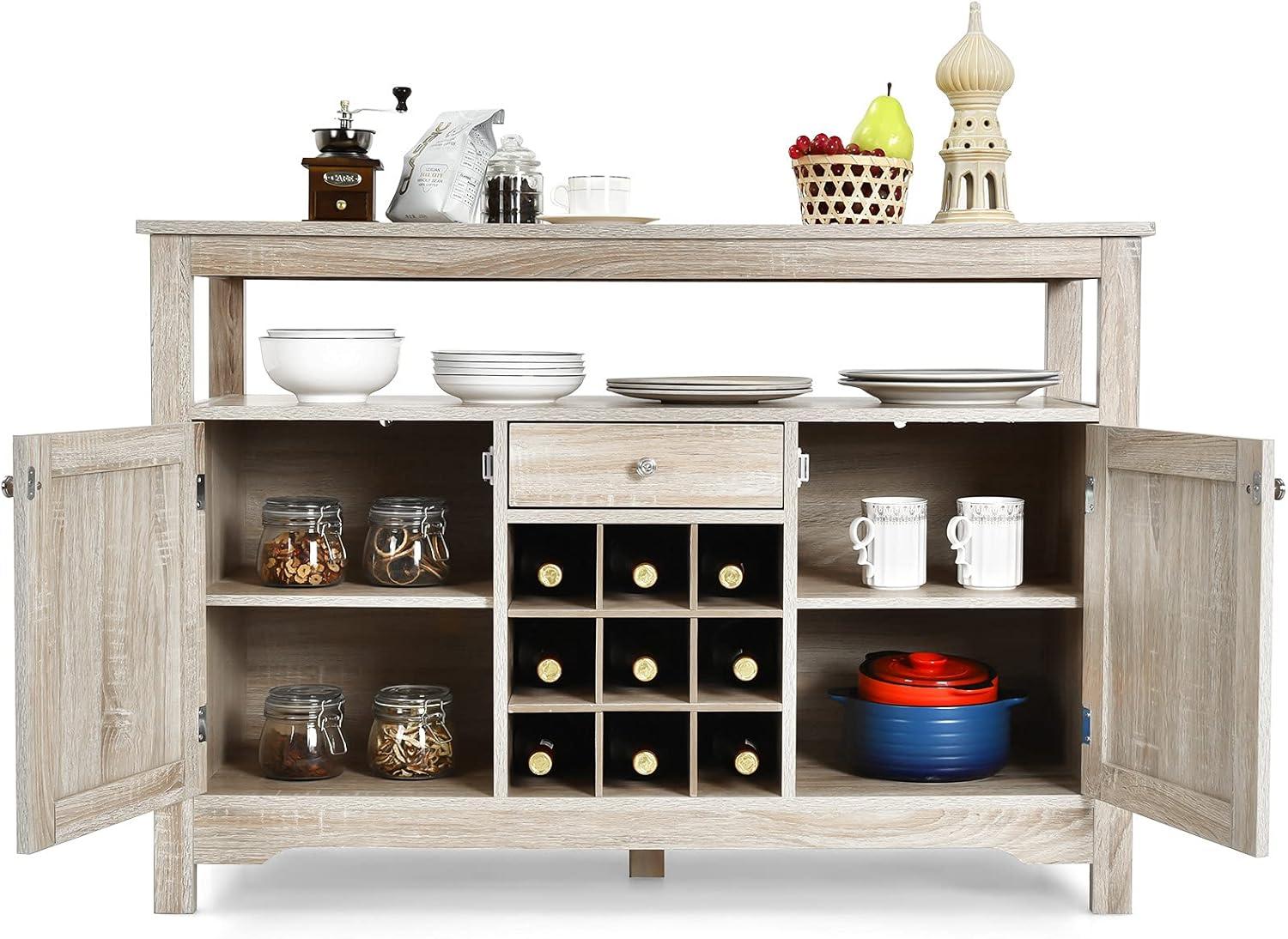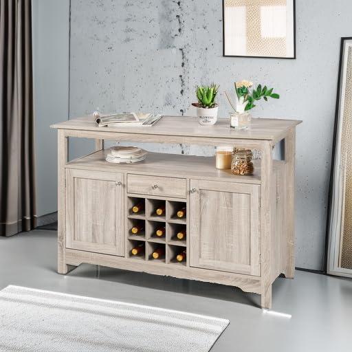 Giantex Buffet Server Sideboard, Console Wood Dining Table, Cupboard Table with 2 Cabinets, 1 Drawer and 9 Wine Cabinets, Storage Organizer Kitchen and Dining Room (Gray)(Natural)