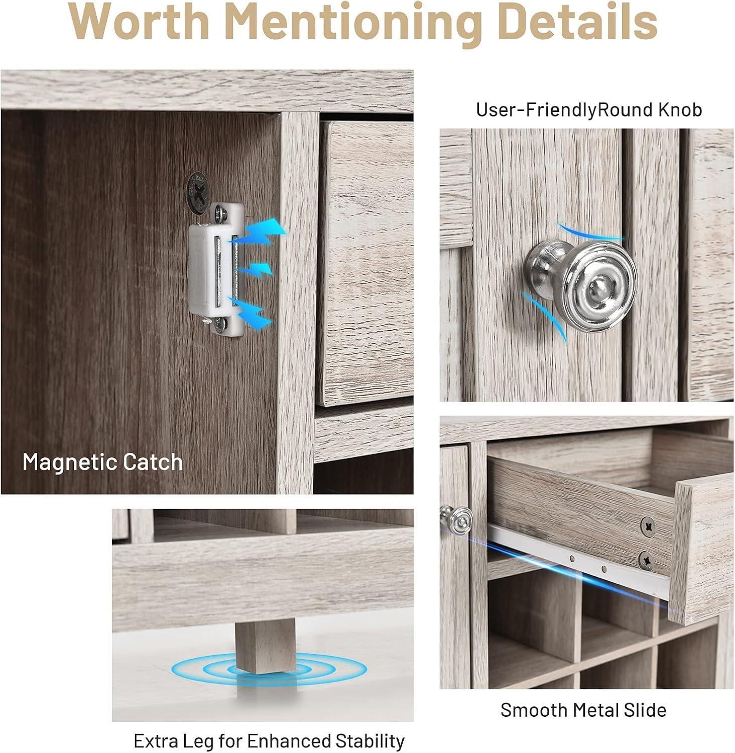 【Sturdy Structure with Additional Table Leg】: Crafted from durable MDF material, the buffet side board of can withstand a maximum weight capacity of 120 lbs. Plus, 4 thickened legs ensure firm support and additional table leg in the middle enhances stability further. 2 Anti-Tip metal accessories will prevent it from collapsing.