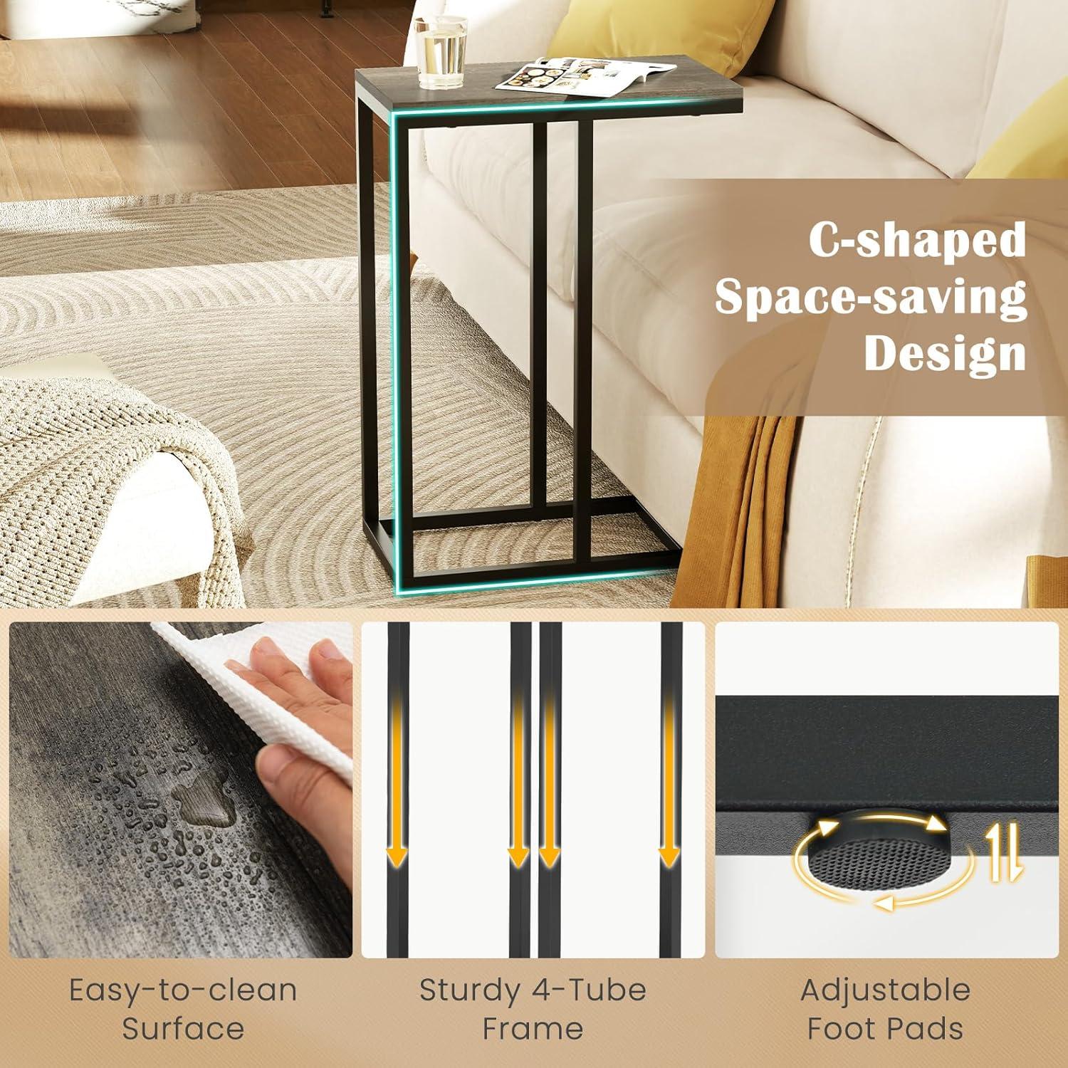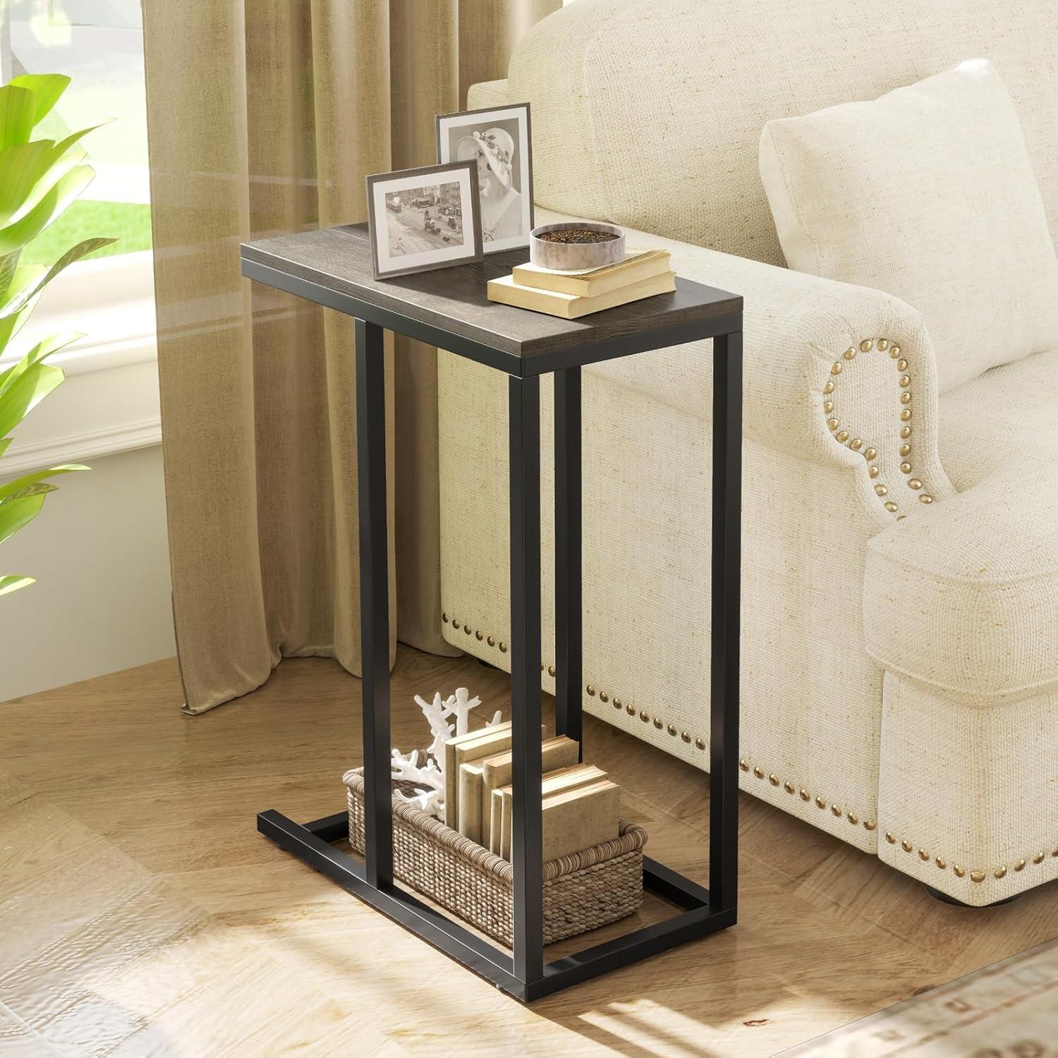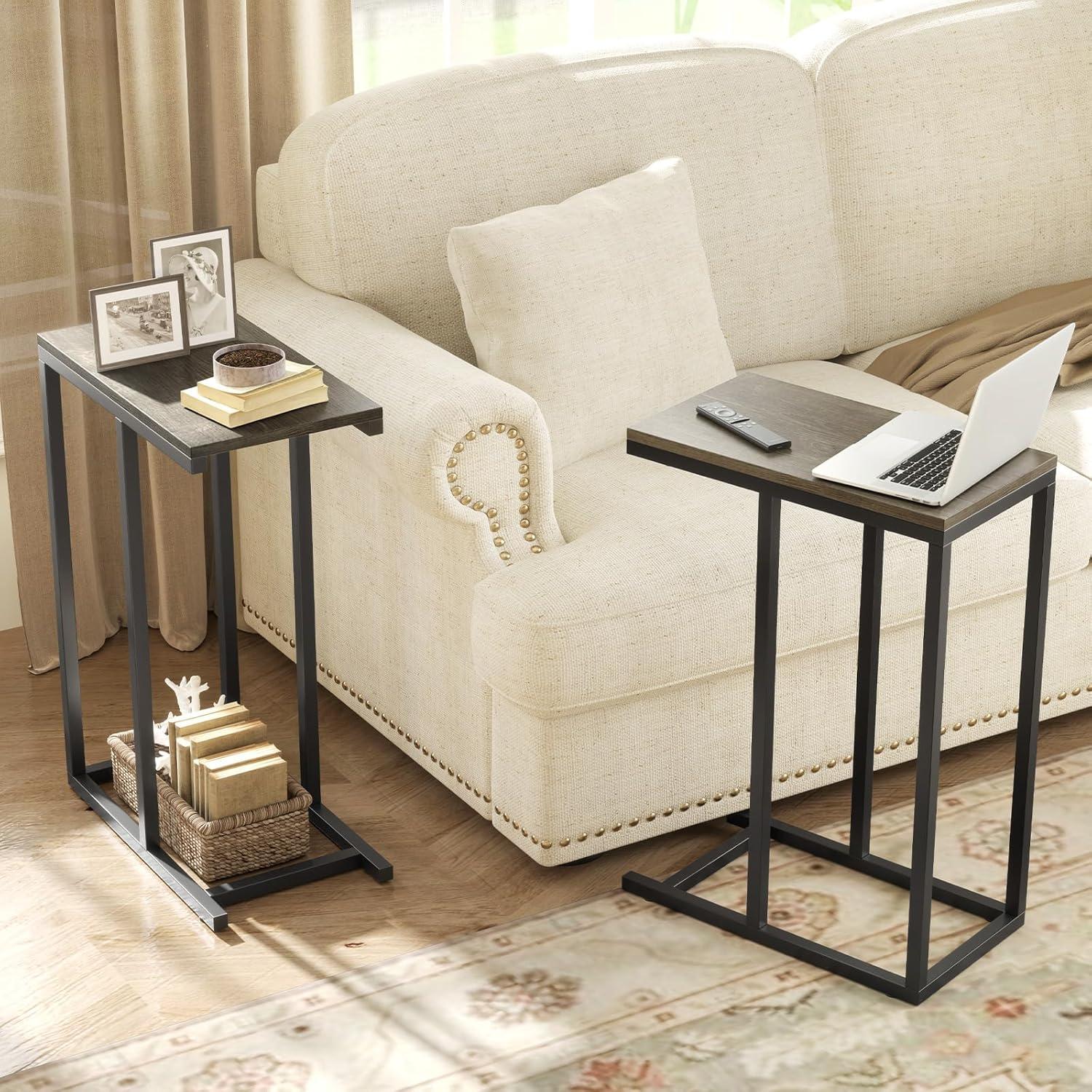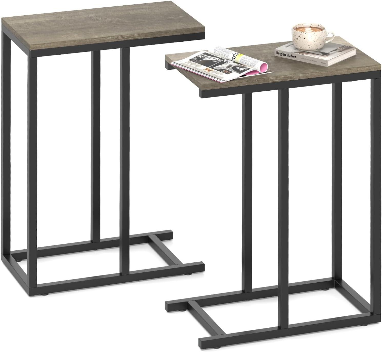 Giantex C Shaped End Table, Small Side Table for Sofa, Couch Table That Slide Under with Metal Frame, Industrial TV Tray Tables for Small Spaces, Living Room Bedroom, Rustic Brown(Greige)