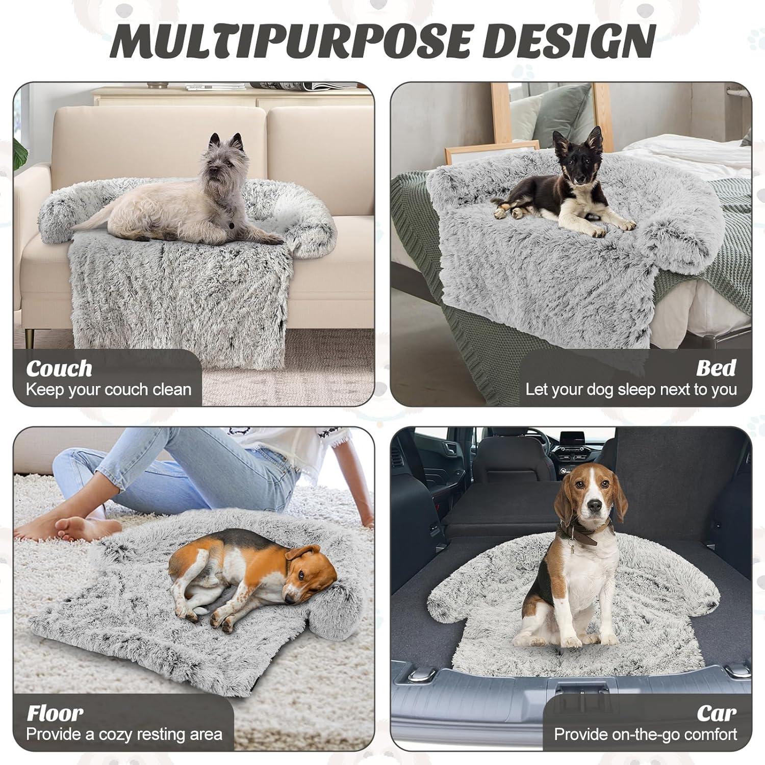 【Furniture Protector & Multipurpose Design】: The plush dog couch bed is a versatile solution for both comfort and furniture protection. It safeguards against scratches, fur, and dander, making it perfect for use on couches, beds, floors, and even in cars. With its cozy design, it offers a comfortable resting area for your furry friend, whether at home or on-the-go.