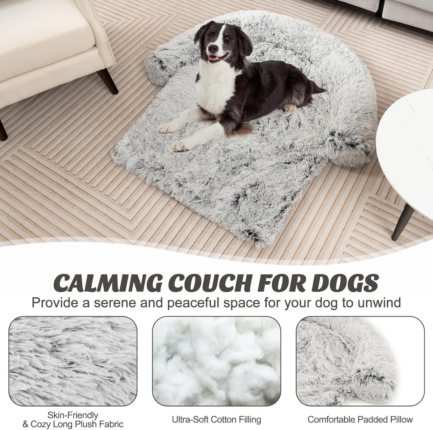 Giantex Calming Dog Bed – Fluffy Plush Pet Bed for Couch, Removable Washable Cover, Soft Neck Bolster, Dog Sofa Bed Furniture Protector Mats for Dogs Cats (Light Gray, Medium – 44” x 40” x 7”)