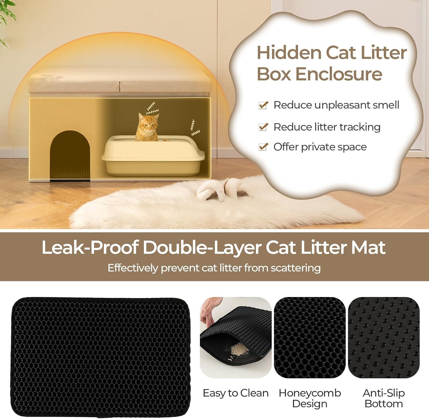 【Privacy Protection】: Our hidden cat litter box enclosure provides a private space for kittens to use the litter box, minimizing odors and litter tracking. It also includes a leak-proof double-layer cat litter mat to collect scattered litter.