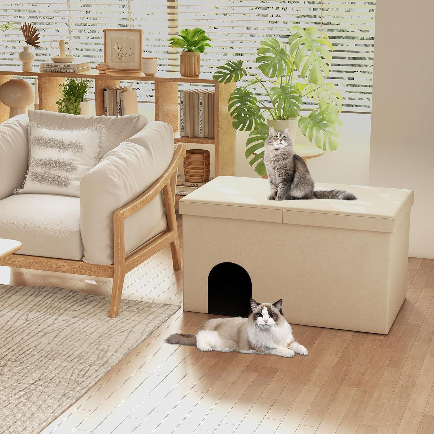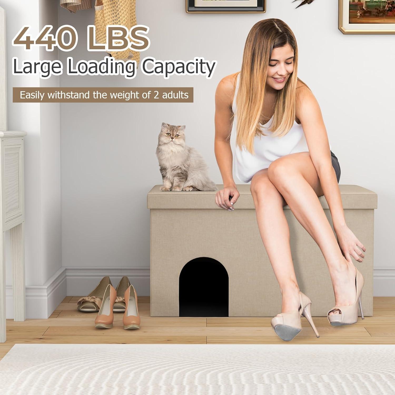 【Multifunctional Design】: Our versatile cat furniture serves as a cat litter box enclosure, ottoman, shoe bench, or footrest, adding style to your home while hiding the cat litter box. Furthermore, it has a weight capacity of 440 lbs, making it sturdy enough to support the weight of two adults.