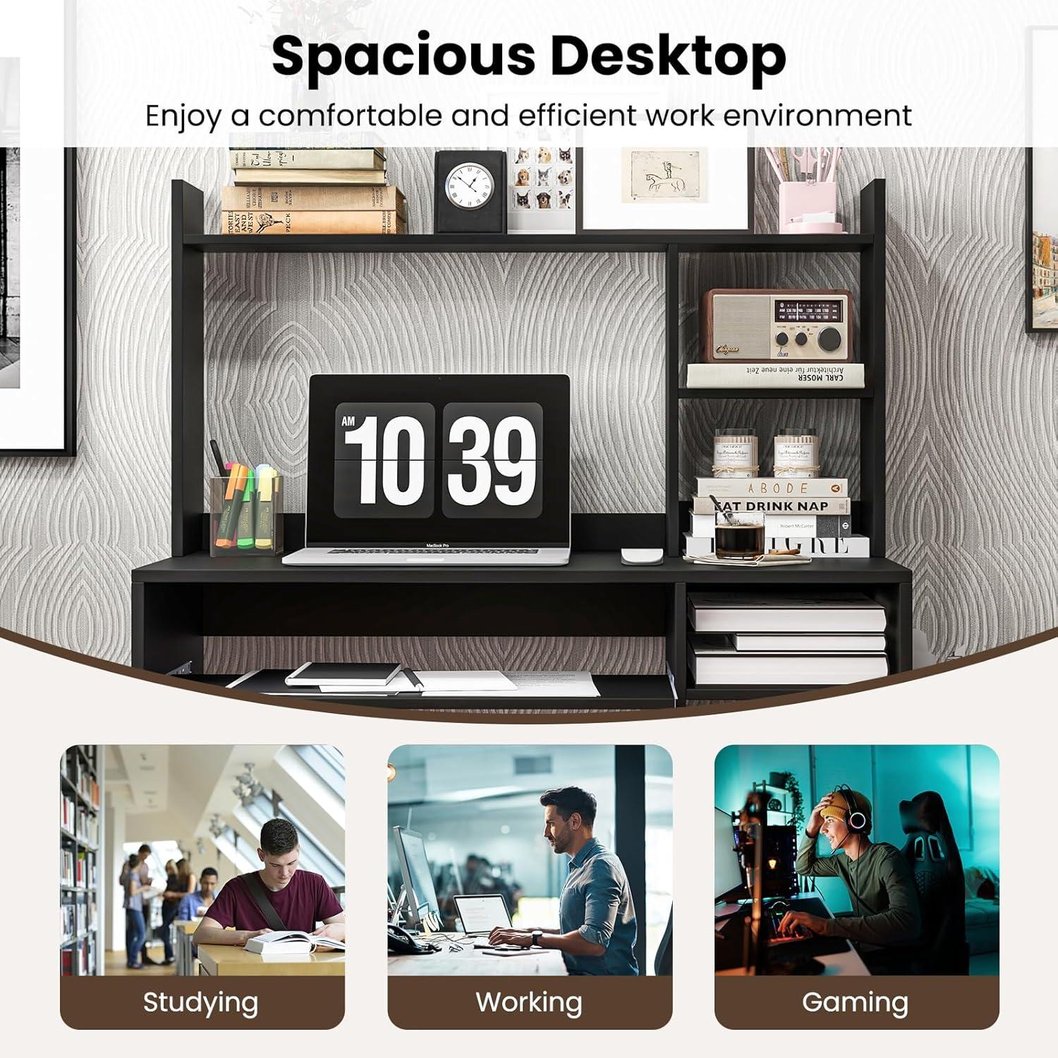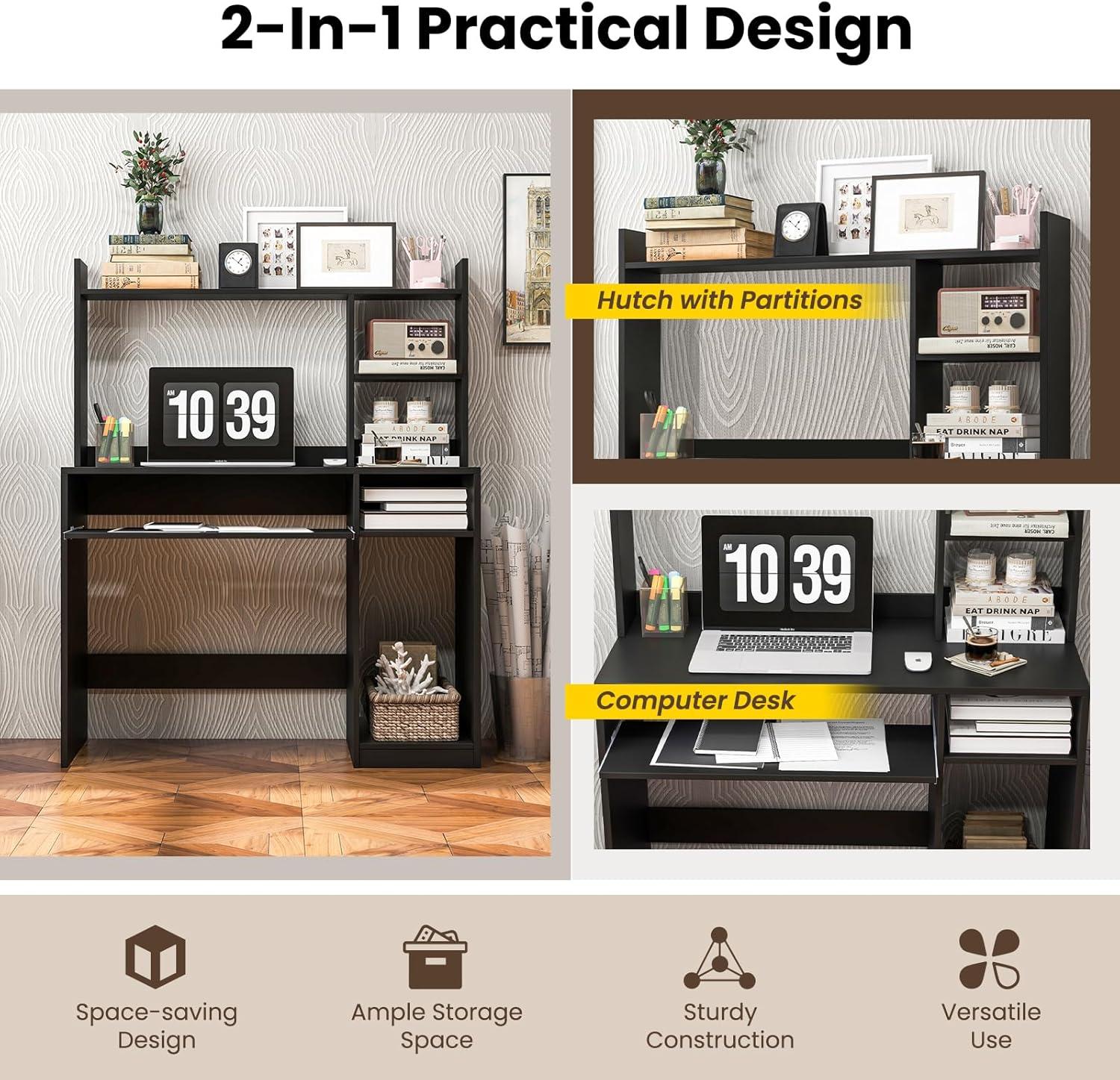 [2-In-1 Practical Design]: This writing desk combines a desk and a hutch with partitions to maximize limited space and let your room well organized. This multifunctional computer workstation desk has versatile use. It can be used as computer desk, gaming desk, study writing desk based on your requirement.