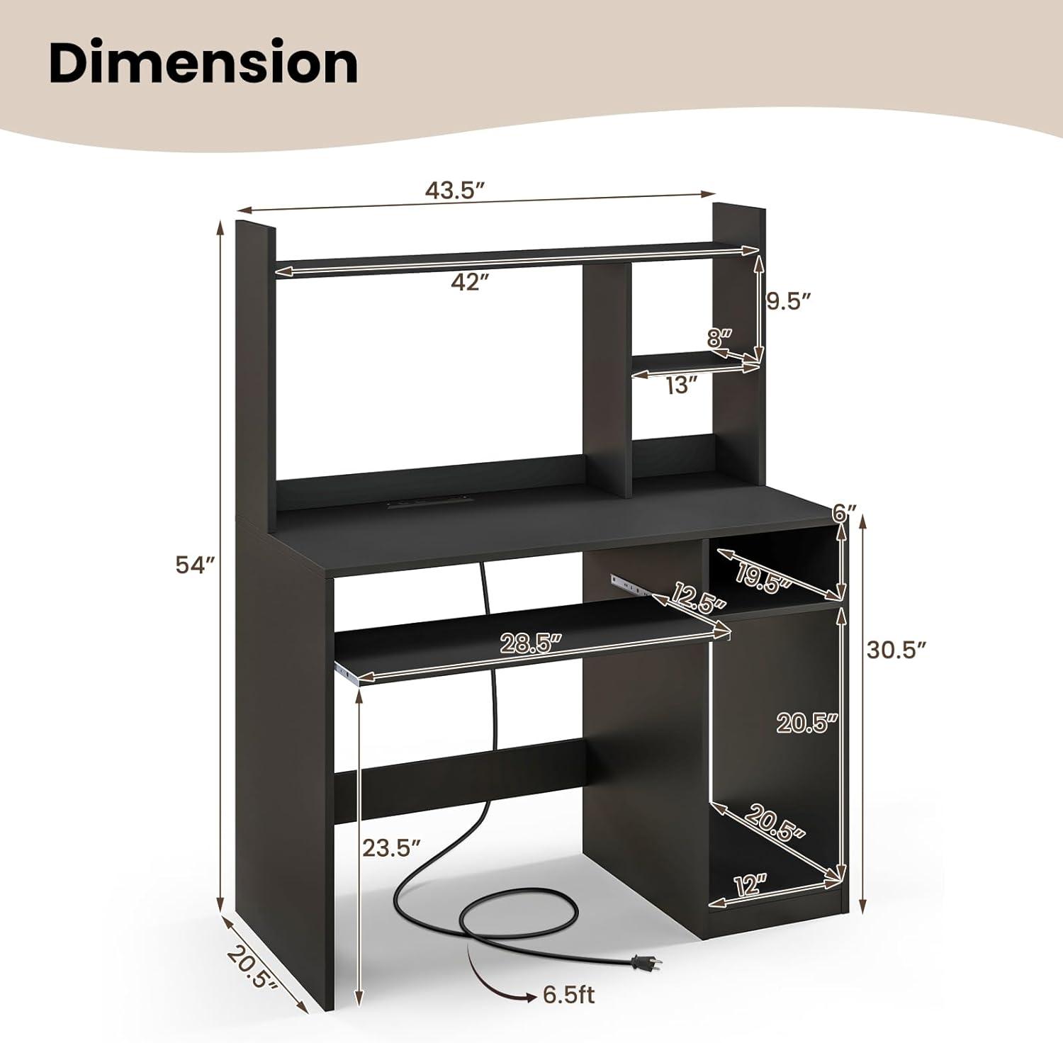 [Computer Desk with Charging Station]: The computer workstation desk includes a built-in socket with 2 outlets(125V/12A) and 2 USB ports (5V, Max 2.1A) for your smartphone, tablet or gaming gears. The power cord length is 6.5 ft long, providing convenience for your working, drafting, studying, gaming.