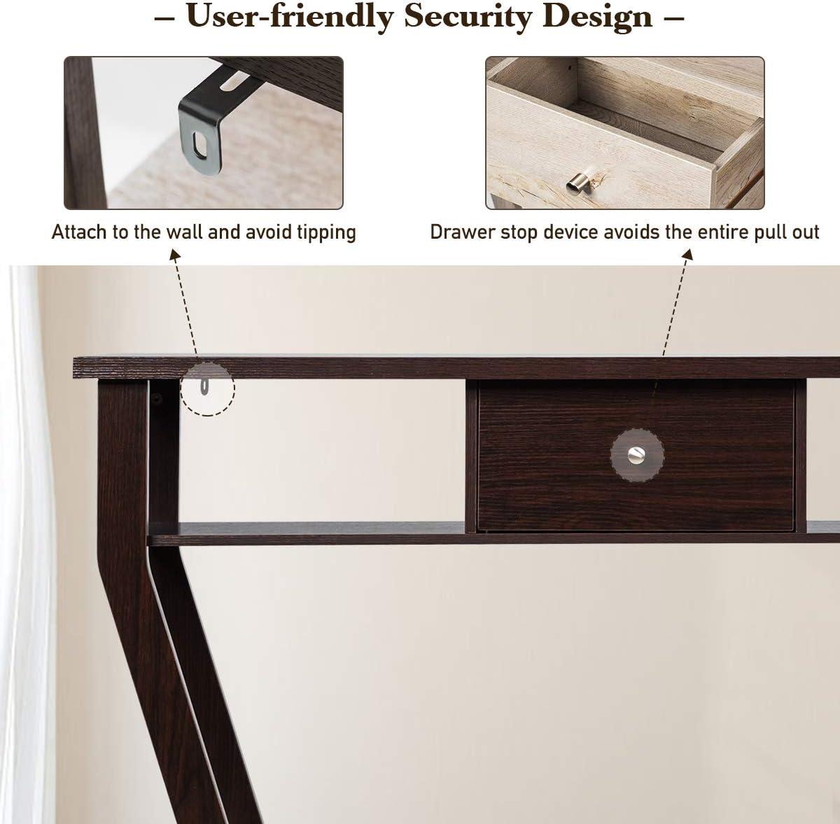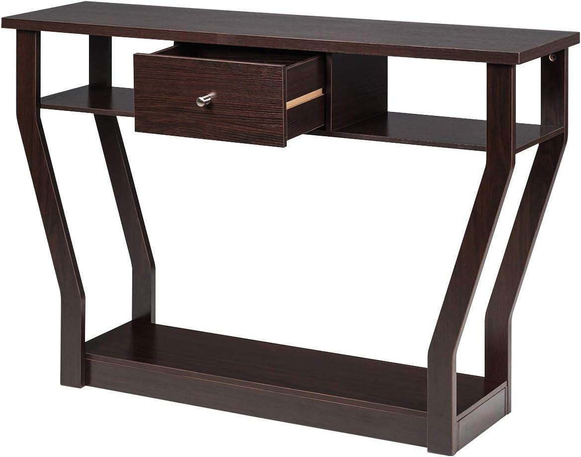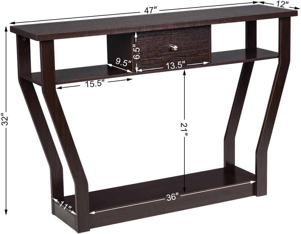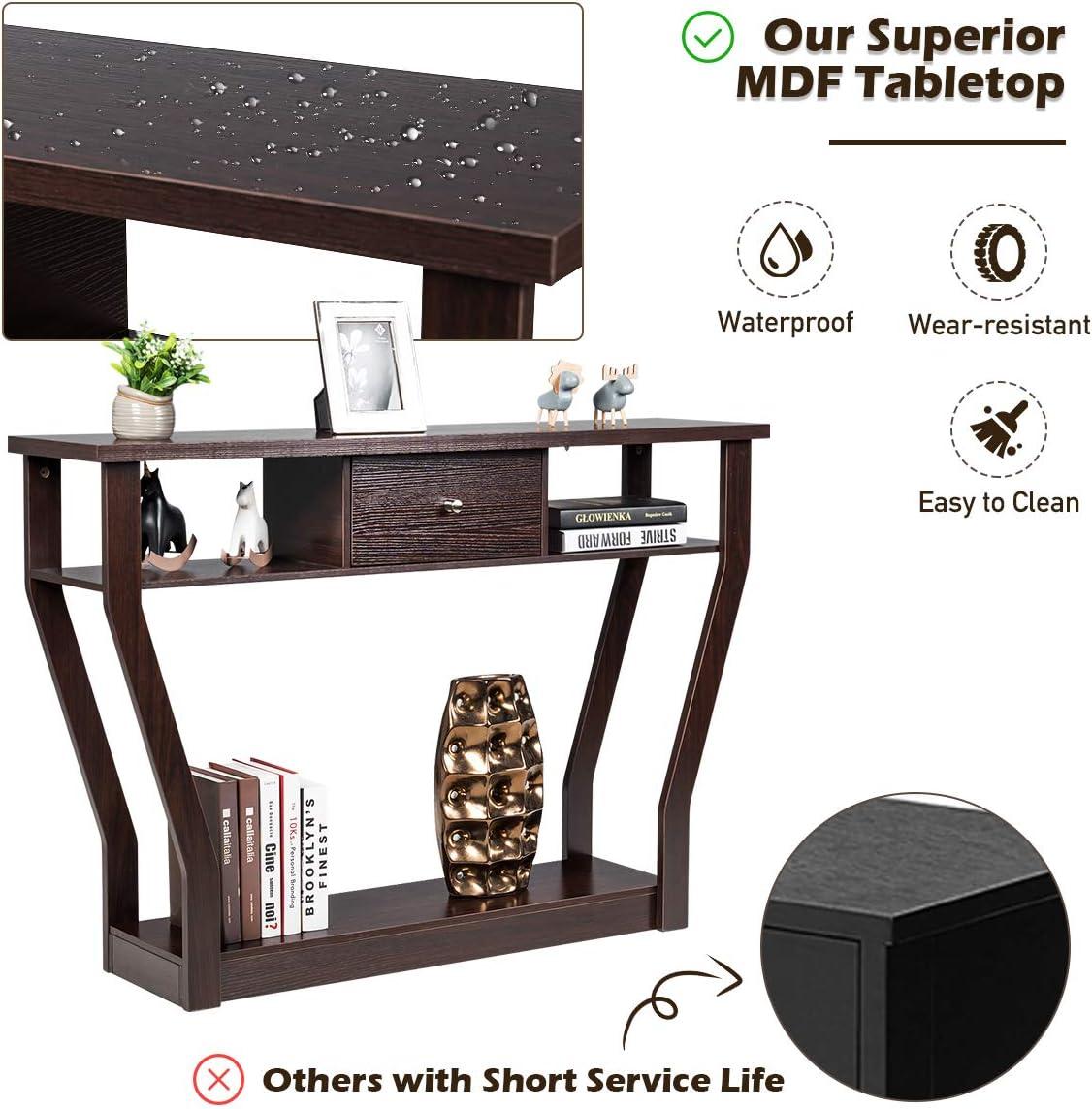 【Convenient and Secure in Use】For the sake of you and your family member's safety, this console table is equipped with tilting prevention device which allows you to attach the console table to the wall. You have nothing to worry about the table fall over and hurt your children thanks to the drop protection. Besides, the drop protection of the drawer ensures additional safety.