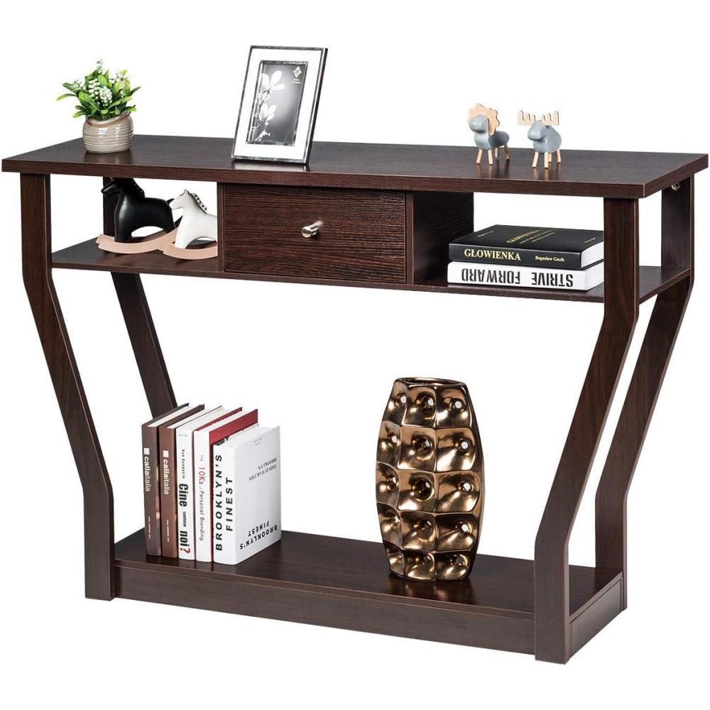 【Remarkable Display Function】The console table comes with a large tabletop with plenty of room for you to display your favorite photos and decor accents. Besides, there is one drawer which offers you a privacy storage space to store some necessity in it. Plus, the open pedestal in the bottom provides ample space for you to place some large object. This console is your perfect for keeping your room neat and tidy.
