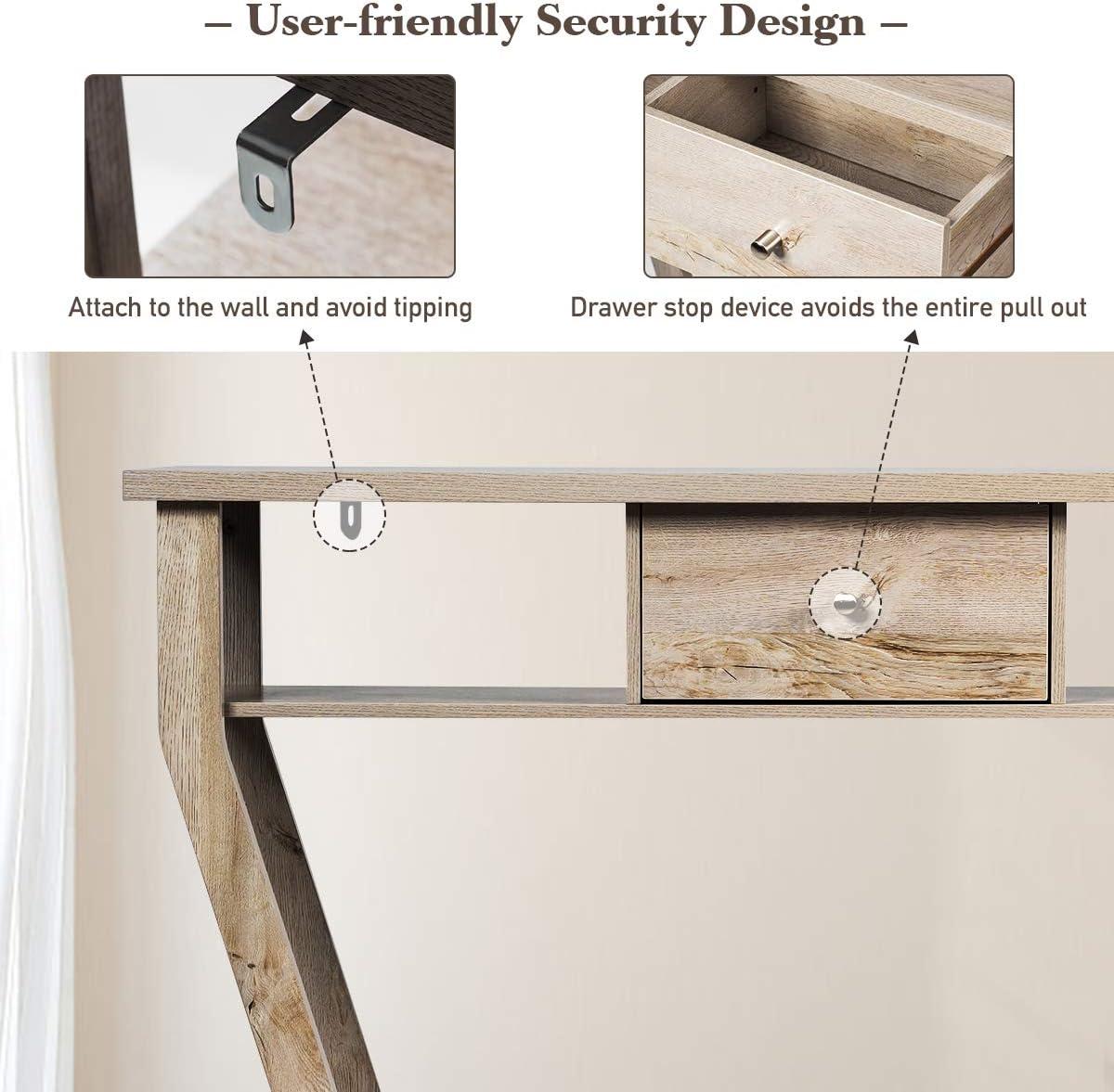 【Convenient and Secure in Use】For the sake of you and your family member's safety, this console table is equipped with tilting prevention device which allows you to attach the console table to the wall. You have nothing to worry about the table fall over and hurt your children thanks to the drop protection. Besides, the drop protection of the drawer ensures additional safety.