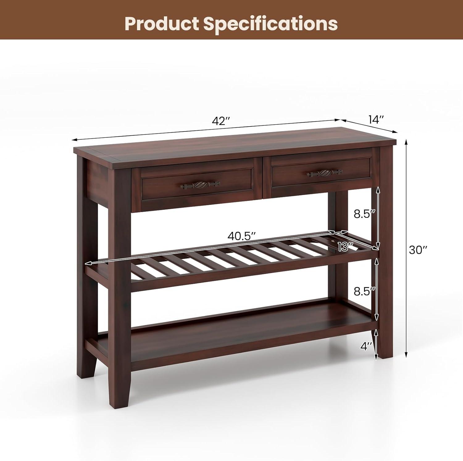 Giantex Console Table with 2 Drawers, 3-Tier Narrow Entryway Table with Storage, 2 Open Shelves & Solid Wood Legs, Wooden Long Sofa Side Table, Rectangular Entry Table for Home Living Room Hallway