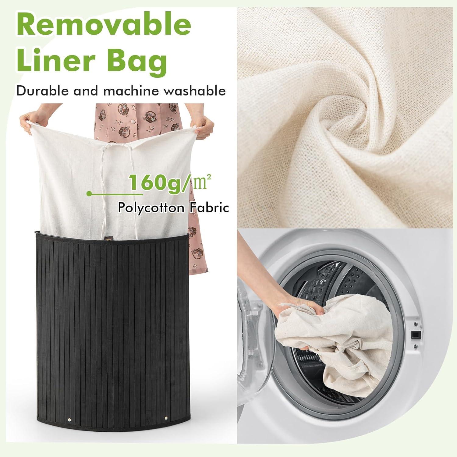 Giantex Corner Laundry Hamper with Lid, 58 L Bamboo Laundry Basket with Removable Liner & Handle, Triangle Clothes Hamper for Small Spaces, Bedroom, Bathroom, Laundry & Living Room (Brown)(Bamboo)