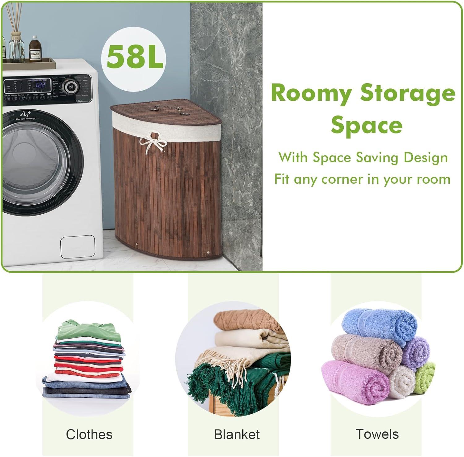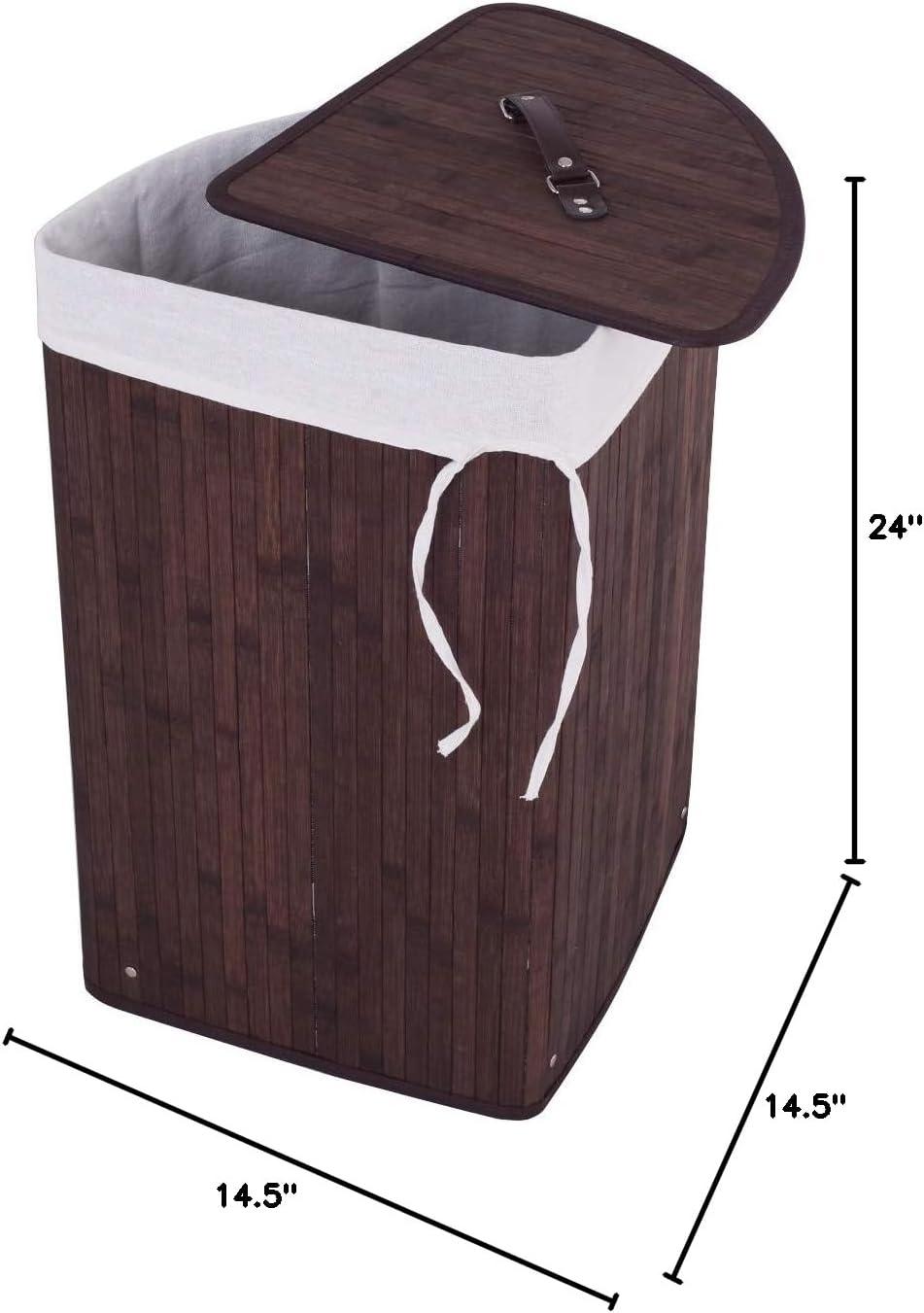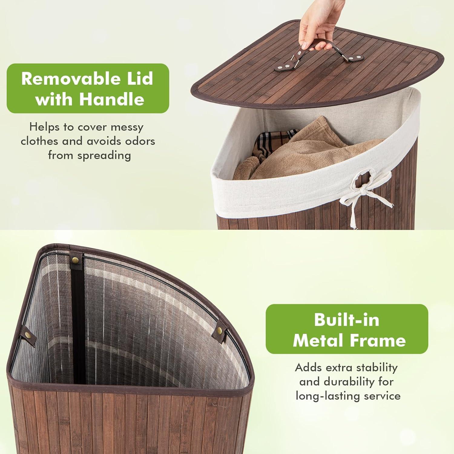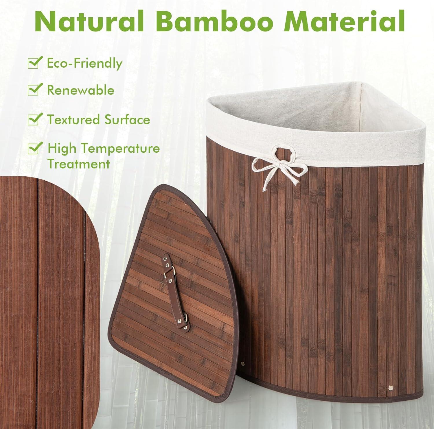 Giantex Corner Laundry Hamper with Lid, 58 L Bamboo Laundry Basket with Removable Liner & Handle, Triangle Clothes Hamper for Small Spaces, Bedroom, Bathroom, Laundry & Living Room (Brown)(Brown)