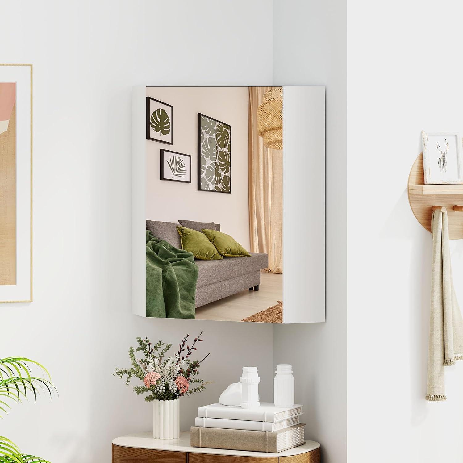 [Space Saver for Your Room]: The bathroom vanity mirror cabinet offers additional storage space without taking up any floor space. Its clever corner design allows for a perfect fit in any corner of your room, maximizing the use of space.