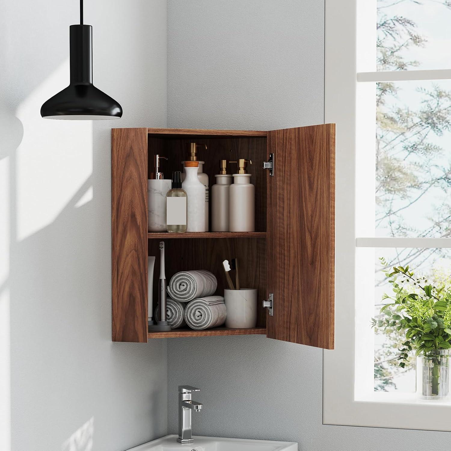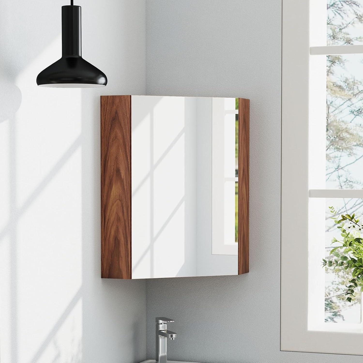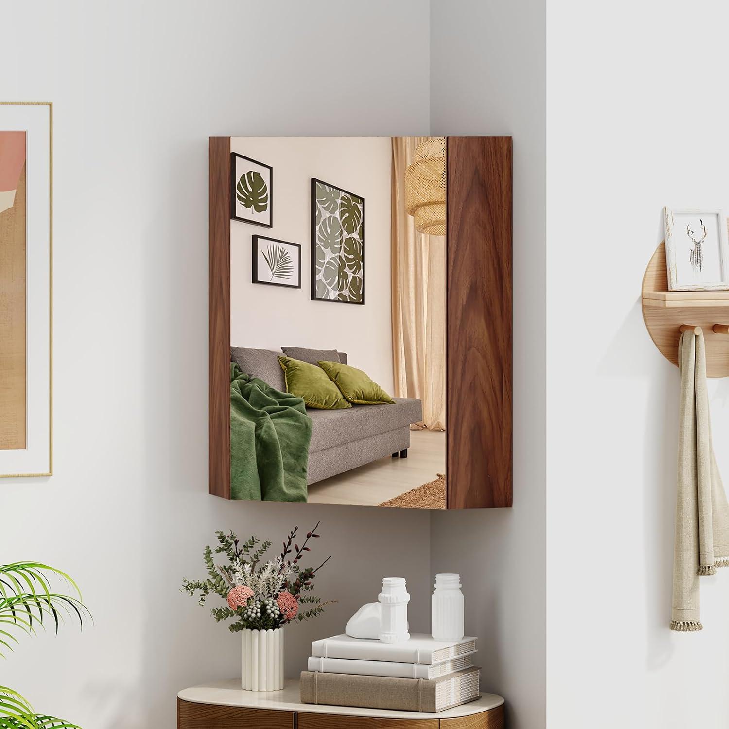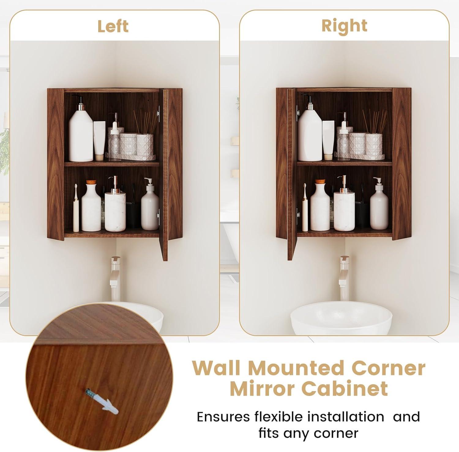 Giantex Corner Medicine Cabinet, 23.5” Over The Toilet Storage Cabinet with Mirror Door, Adjustable Shelf, Clear Reflection, Space-Saving Mirrored Cabinet, Bathroom Wall Cabinet for Entryway, Brown(Brown)