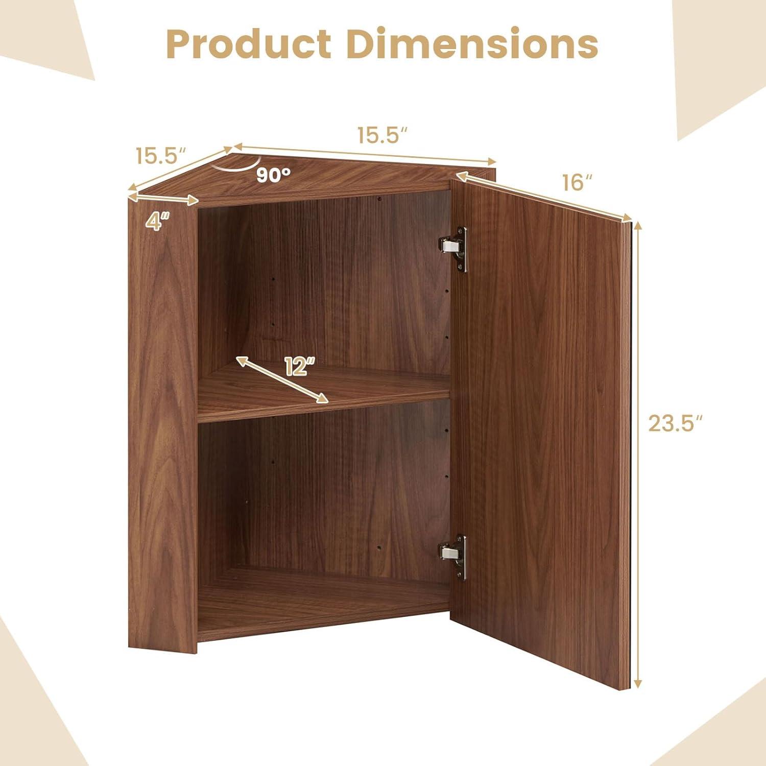 Giantex Corner Medicine Cabinet, 23.5” Over The Toilet Storage Cabinet with Mirror Door, Adjustable Shelf, Clear Reflection, Space-Saving Mirrored Cabinet, Bathroom Wall Cabinet for Entryway, Brown(White)