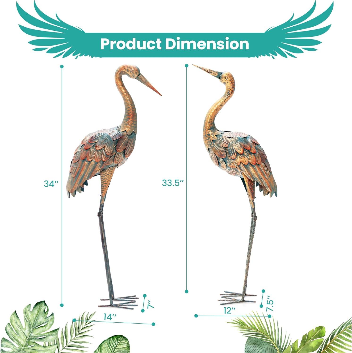 【Full Crane Statue Set】: Package includes 2 crane sculptures measuring 14″ x 7″ x 34″ (L x W x H) and 12″ x 7.5″ x 33.5″ (L x W x H). Separate design allows them to stand gracefully in different occasions to receive compliments from passersby, such as backyard, patio, poolside, lakeside, etc.