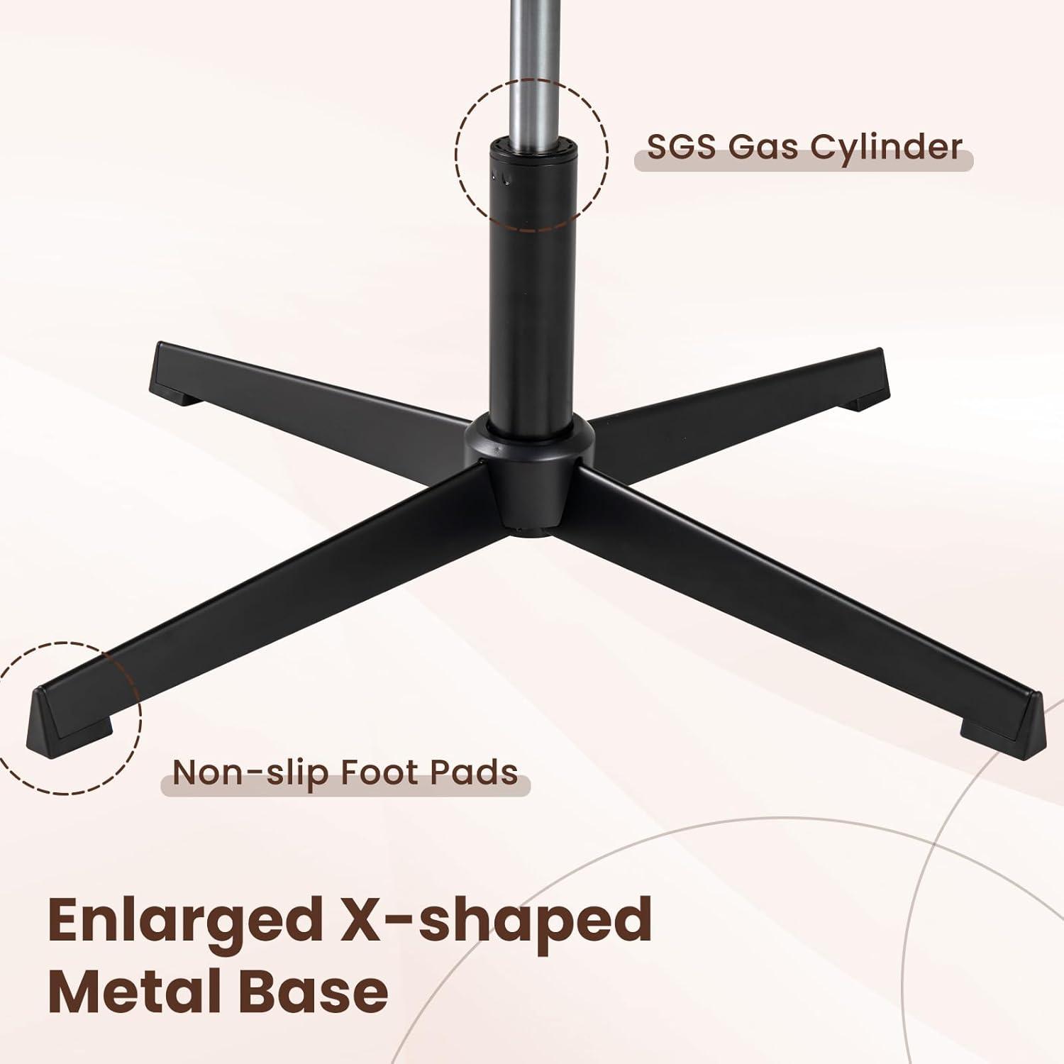 [Stable Structure & Large Capacity]: This armless chair with no wheels features a large 28″ diameter heavy-duty metal base that ensures stability and durability. The SGS-certified class 3 gas lift provides smooth height adjustments, while the nonslip rubber pads offer additional stability, allowing a maximum weight capacity of 350 lbs.
