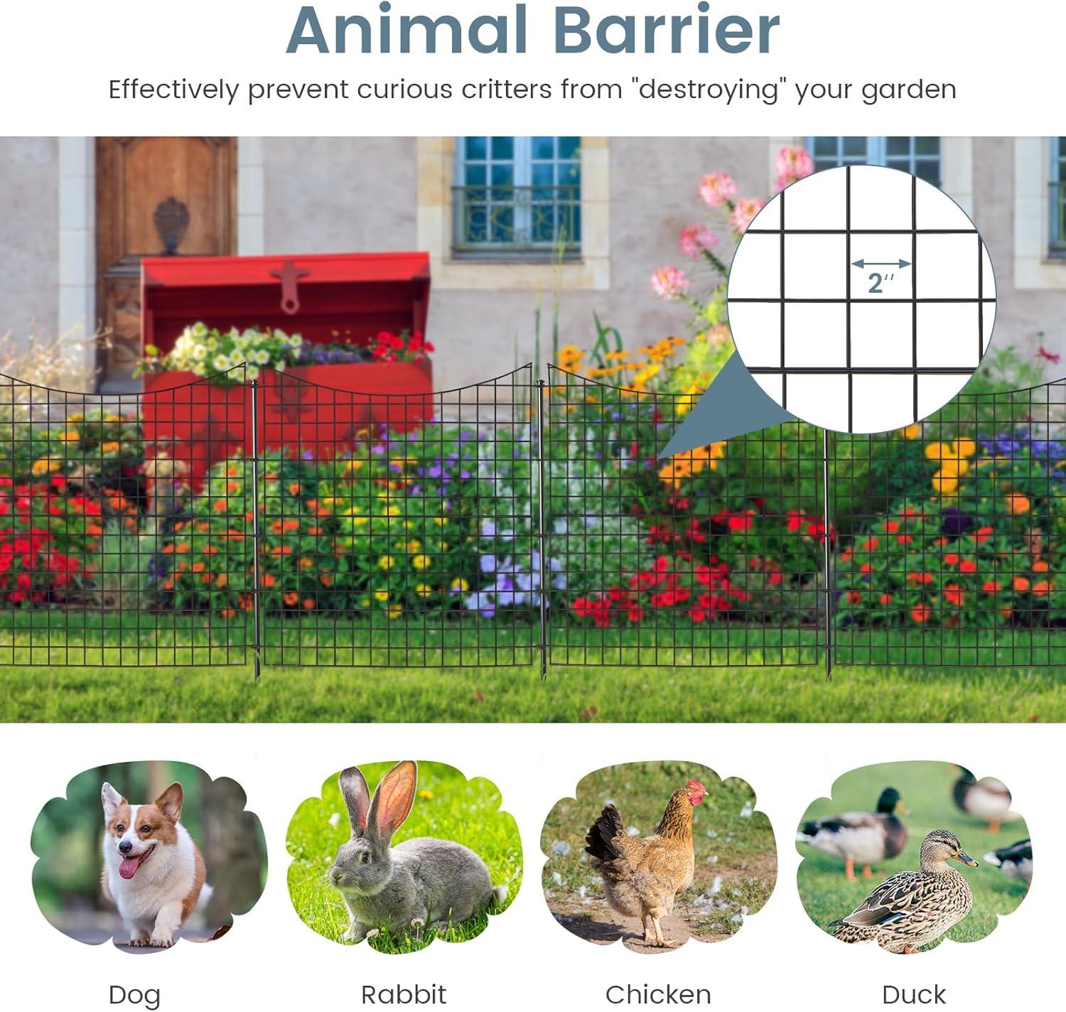 【Reliable Animal Barrier】: With its optimal height and 2-inch spacing, this garden fence effectively keeps curious animals out, protecting your garden from unwanted damage. Enjoy year-round garden protection with this reliable animal barrier.