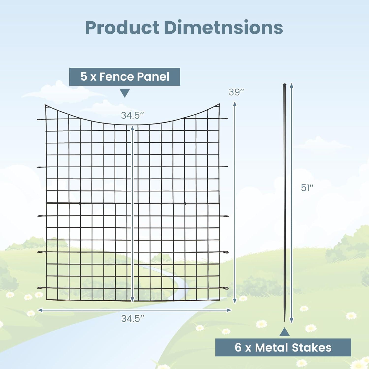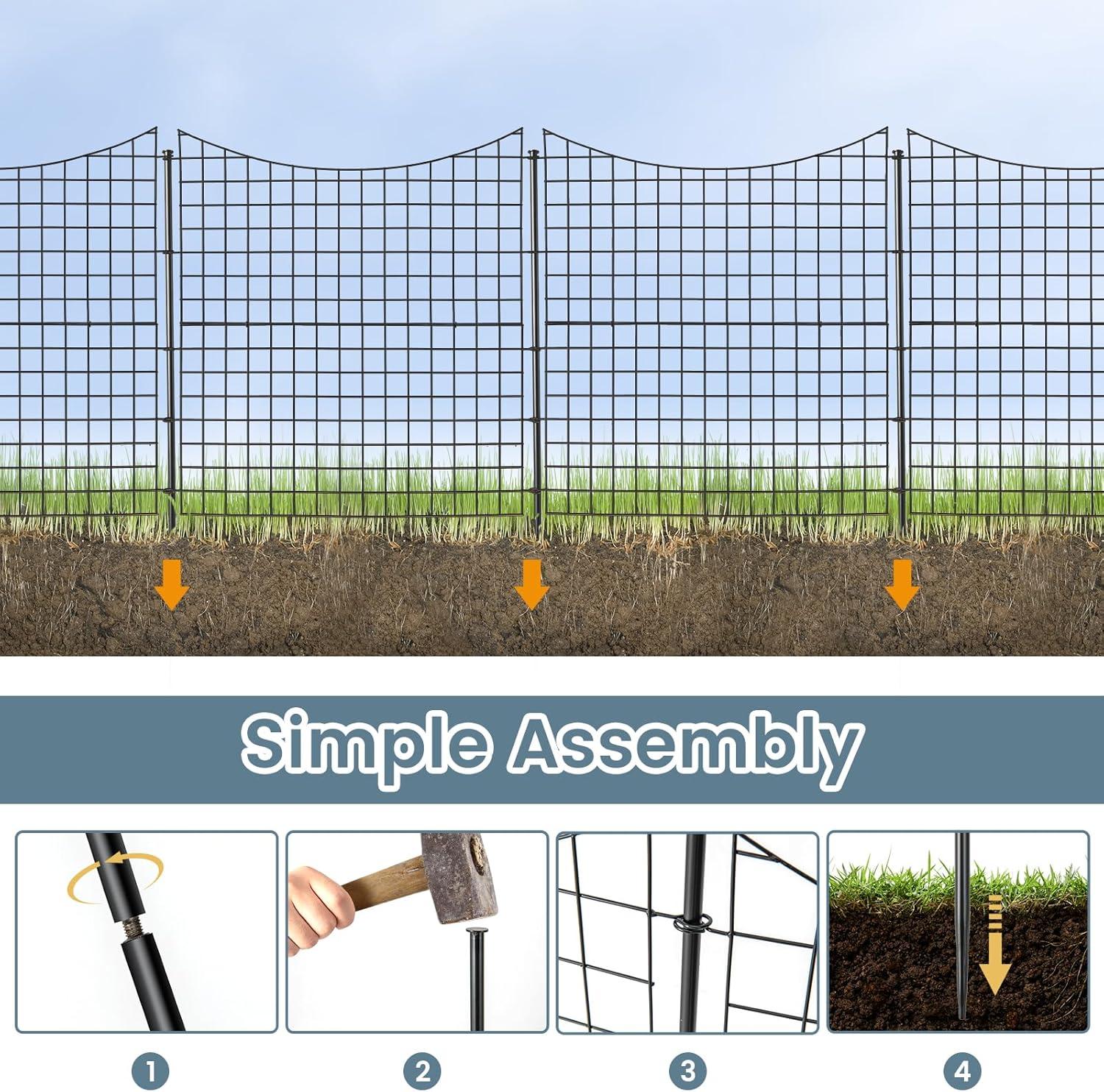 【Easy Assembly】: Assembling this metal wire border is a breeze. Simply connect 5 panels using 6 metal stakes, and then securely insert the ground stakes into the soil. Enjoy quick and hassle-free setup with this defense fence.